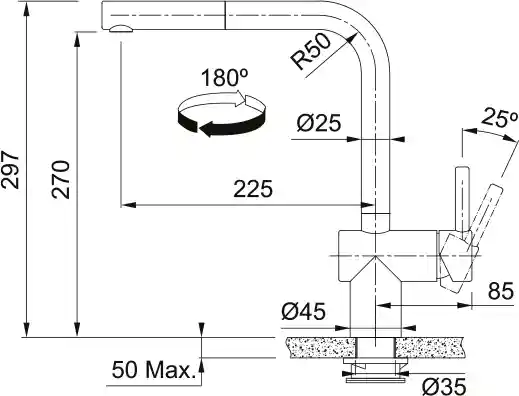 - Высота излива: 297