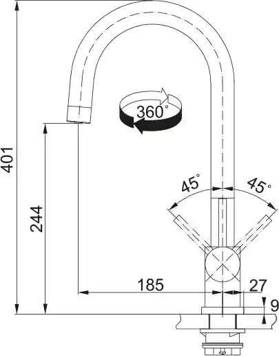 - Высота излива: 244