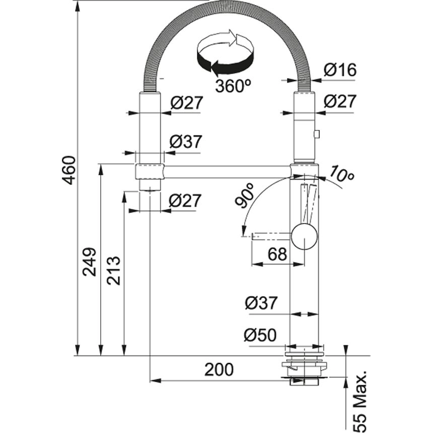 Смеситель FRANKE Pescara 360 черный матовый (115.0545.136)