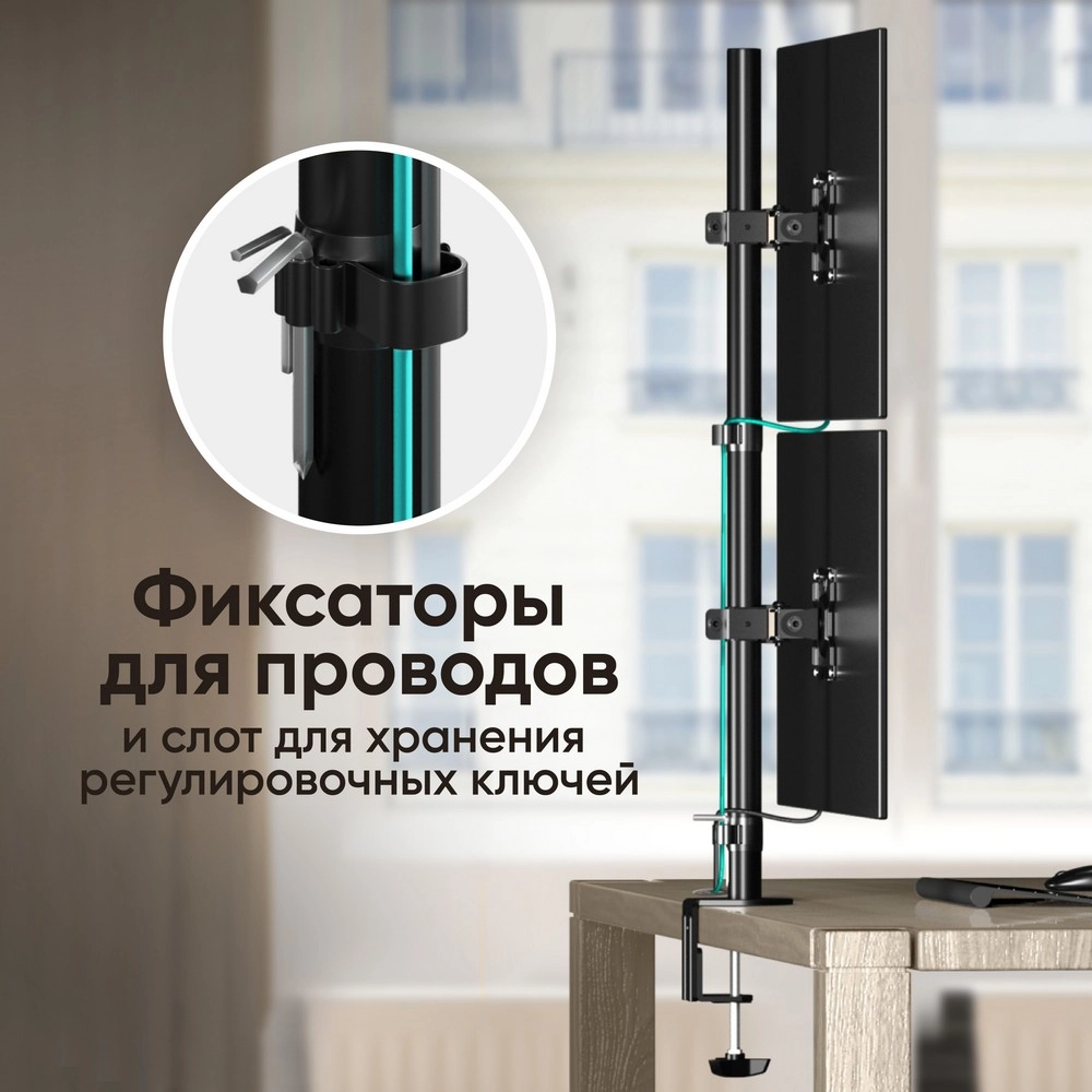 Настольный кронштейн для двух экранов. Максимальная суммарная нагрузка 8 кг.
