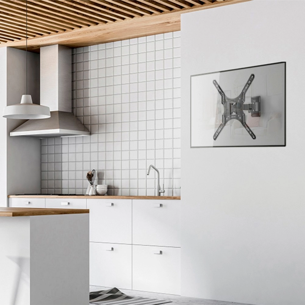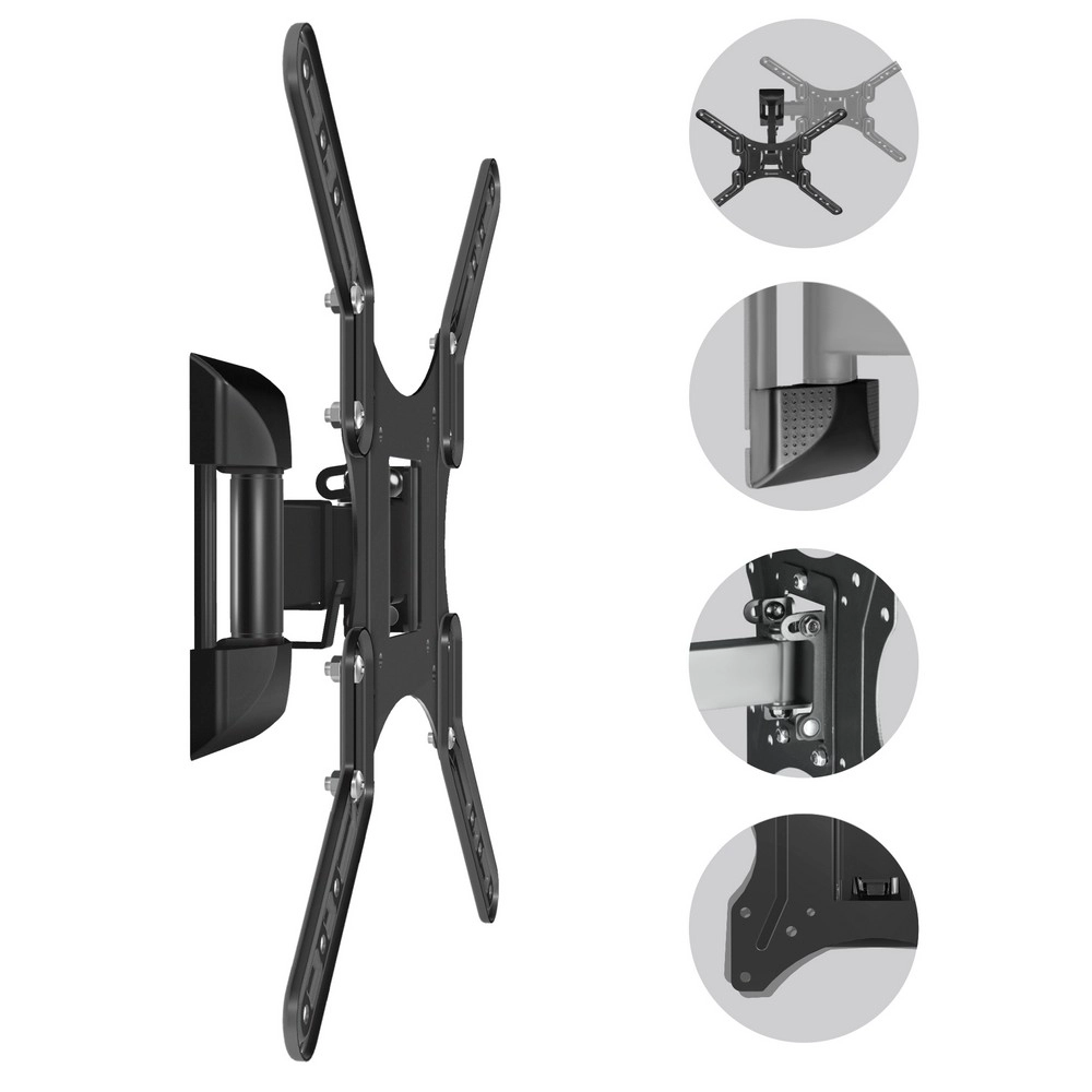 Он обеспечивает возможность маневренного поворота кронштейна на угол до 80°. Для поворота телевизора Вам не нужно использовать дополнительных приспособлений или прилагать усилия. Вы сможете повернуть ТВ-панель и изменить расстояние от стены лёгким движением руки, при этом телевизор зафиксируется в настроенном положении.