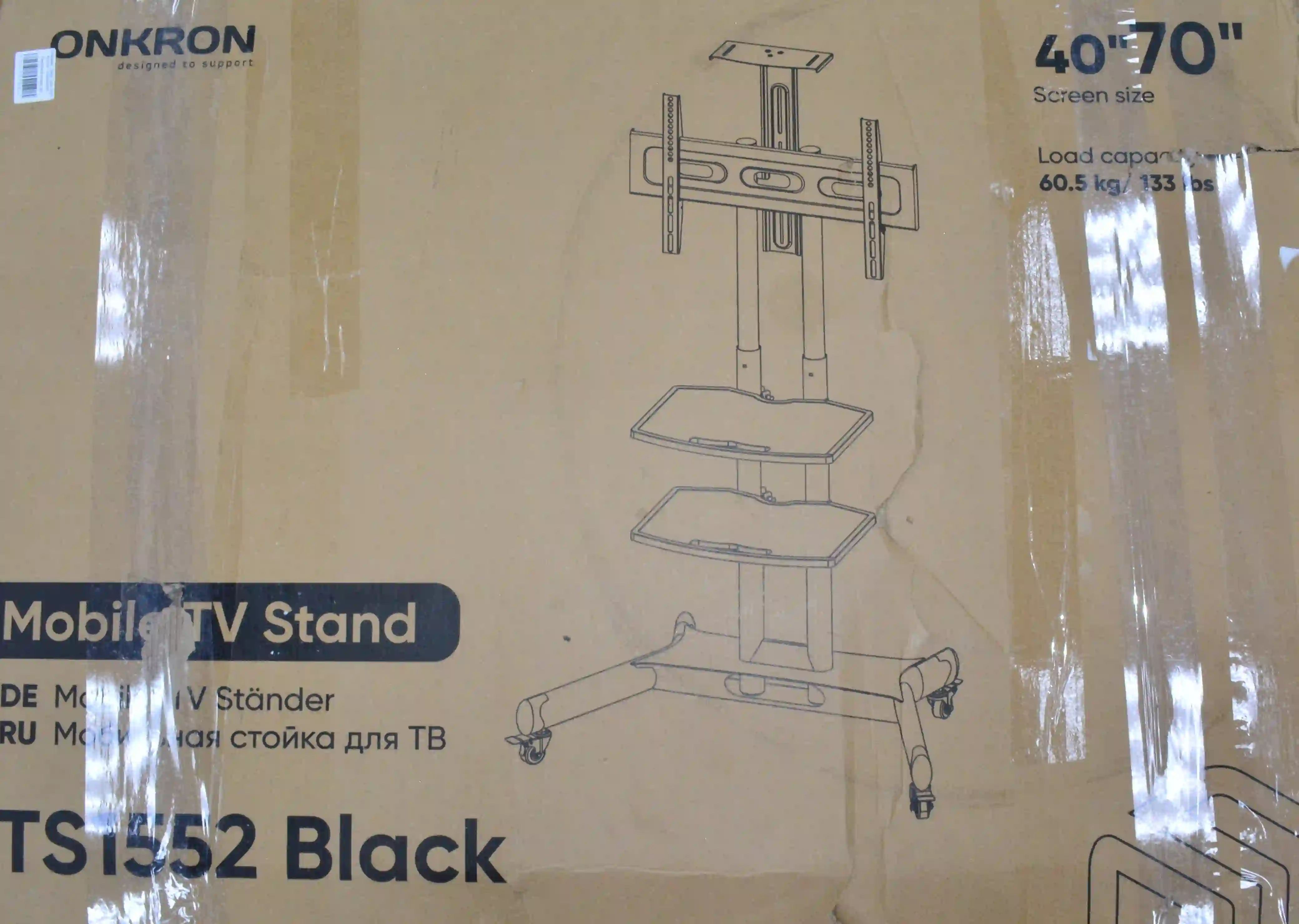 Мобильная стойка ONKRON TS1552 предназначена для ТВ диагональю экрана от 40 до 70 дюймов (101,6 – 177,8 см).