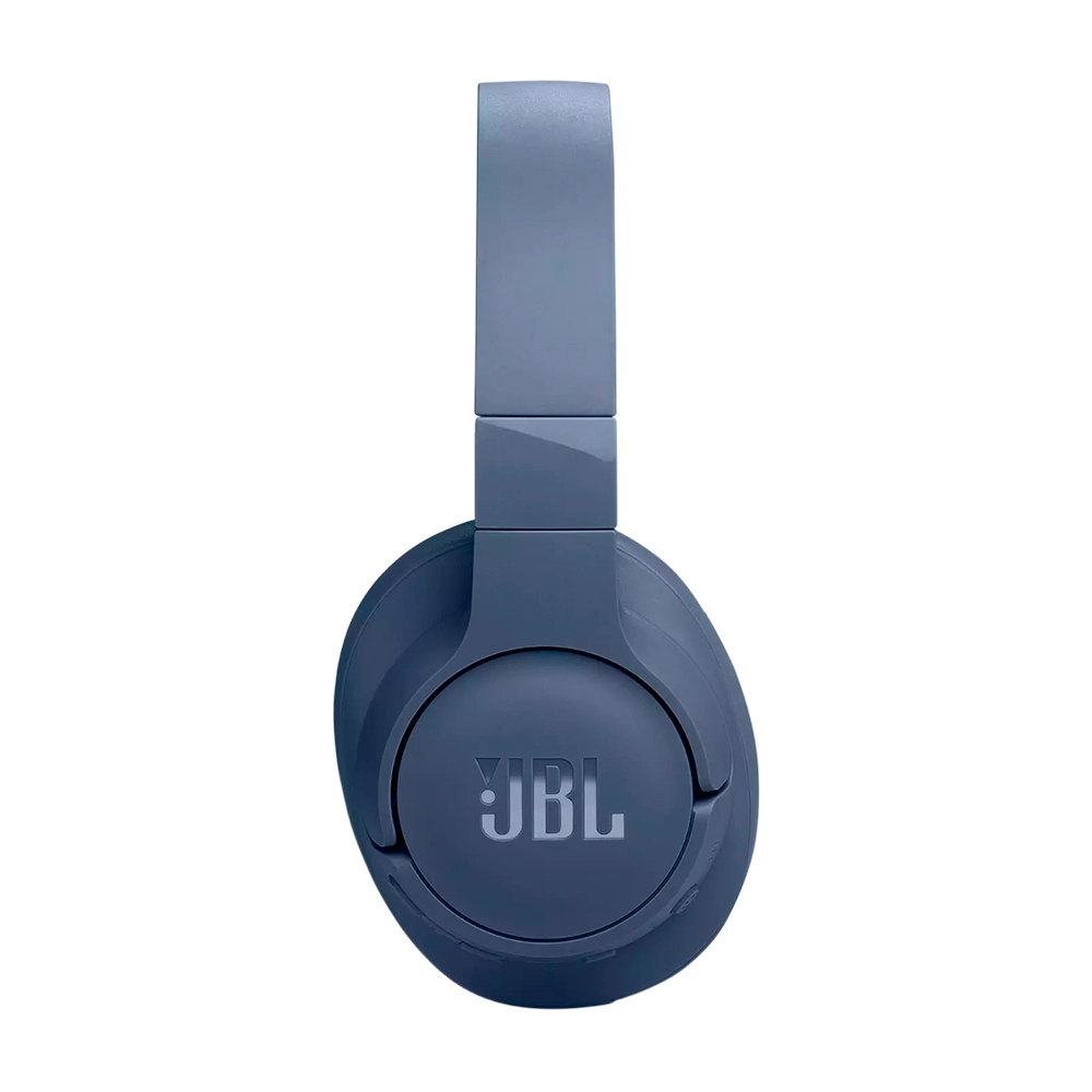 Наушники JBL T770NC в насыщенном синем цвете выделяются выразительным, но сдержанным дизайном. Гладкая поверхность оголовья, лаконичные логотипы и гармоничные пропорции подчёркивают их современный характер. Такой оттенок придаёт образу индивидуальность, оставаясь при этом универсальным — он уместен и в деловой обстановке, и в повседневной носке.
