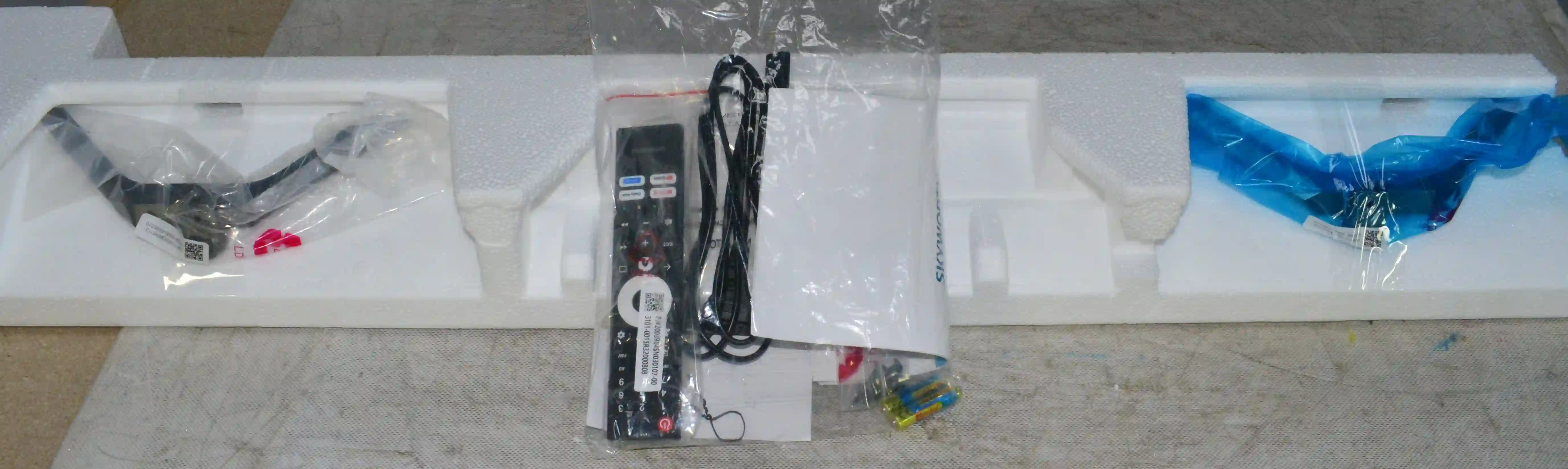 Комплектность: телевизор,документация,кабель питания,винты,ножки 2 шт,батарейки