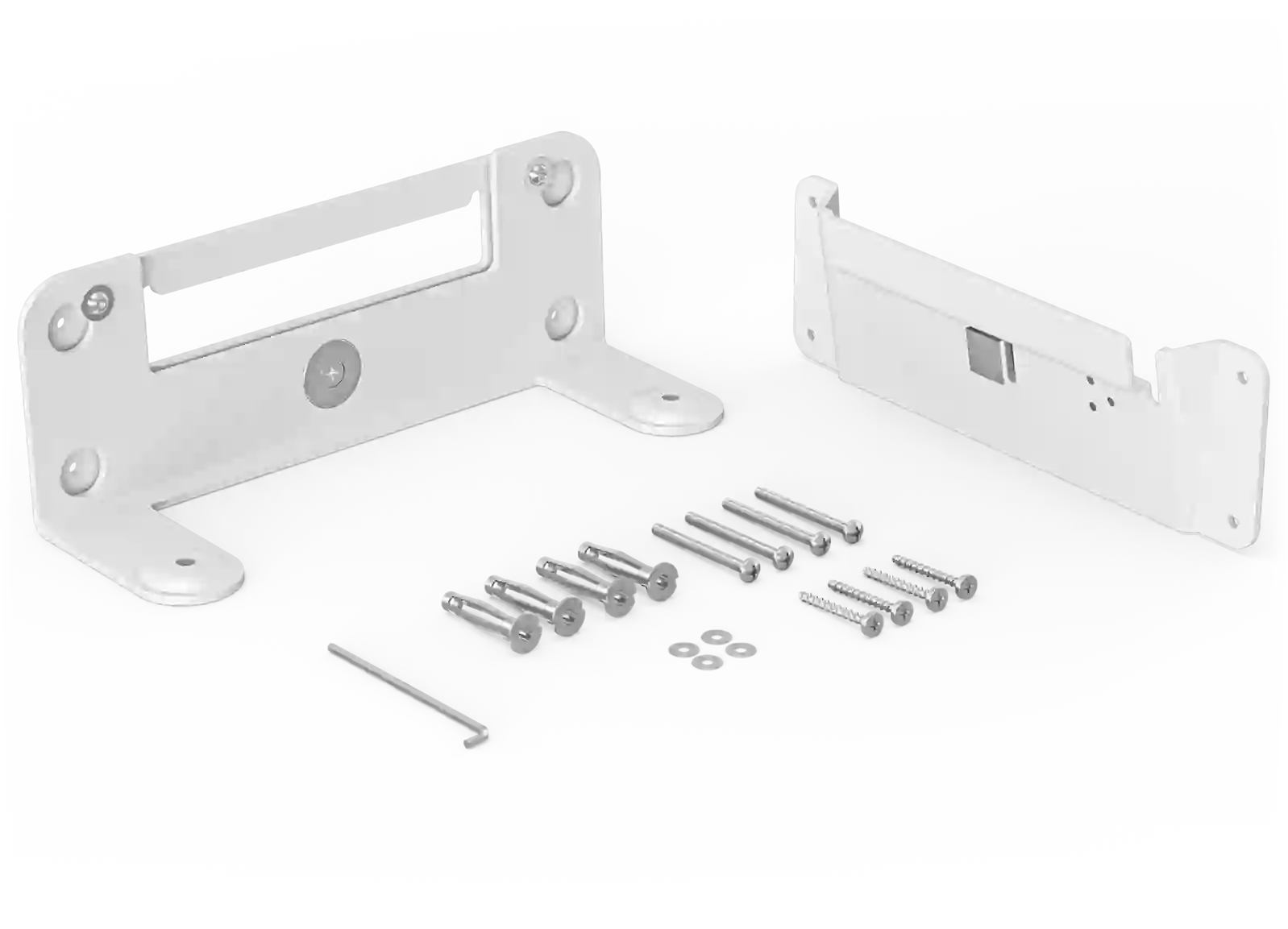 Настенное крепление совместимо со встроенной крышкой крепления кабеля видеобара, поэтому кабели могут проходить вверх, вниз или в обе стороны и оставаться надежно подключенными.