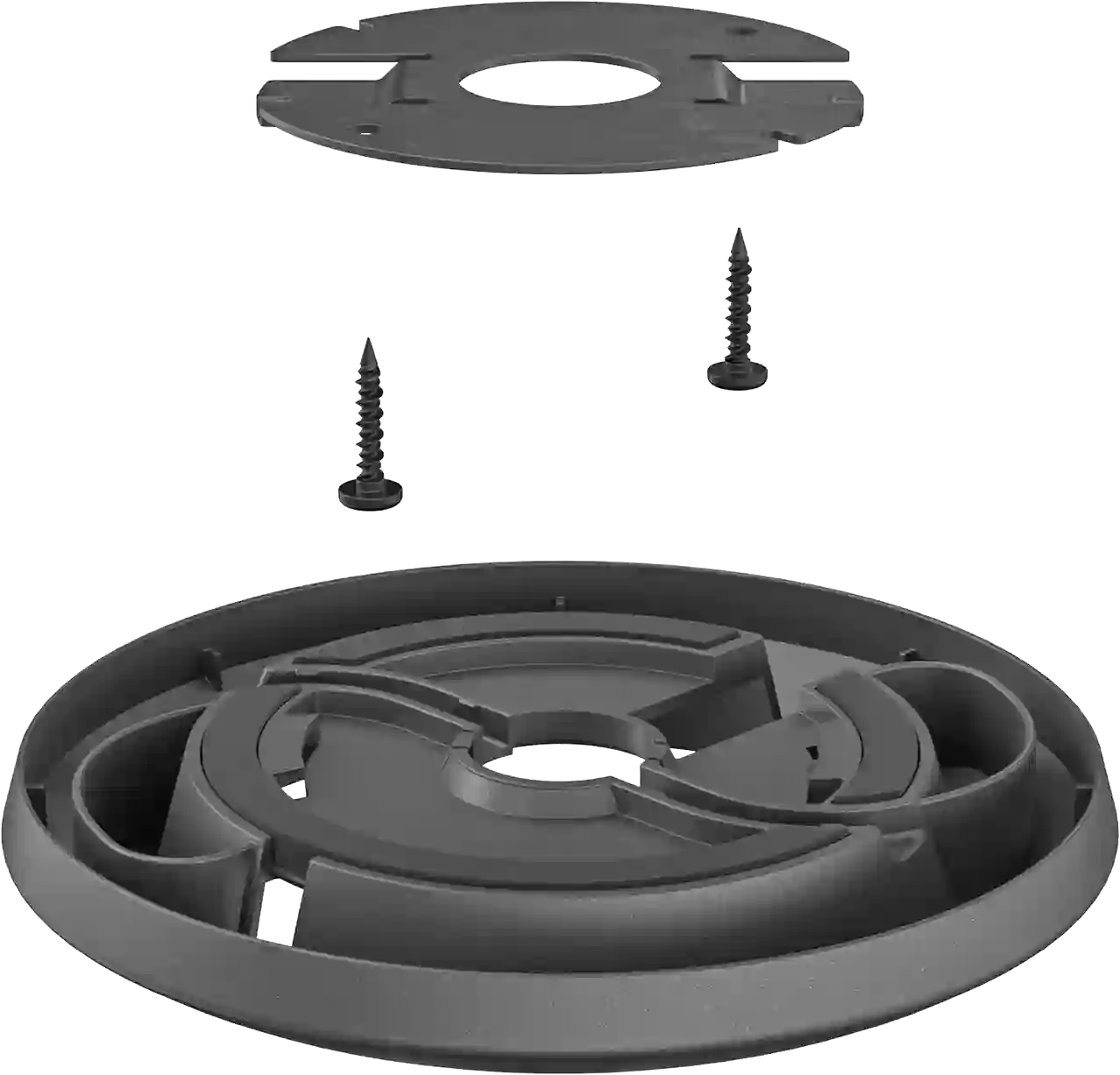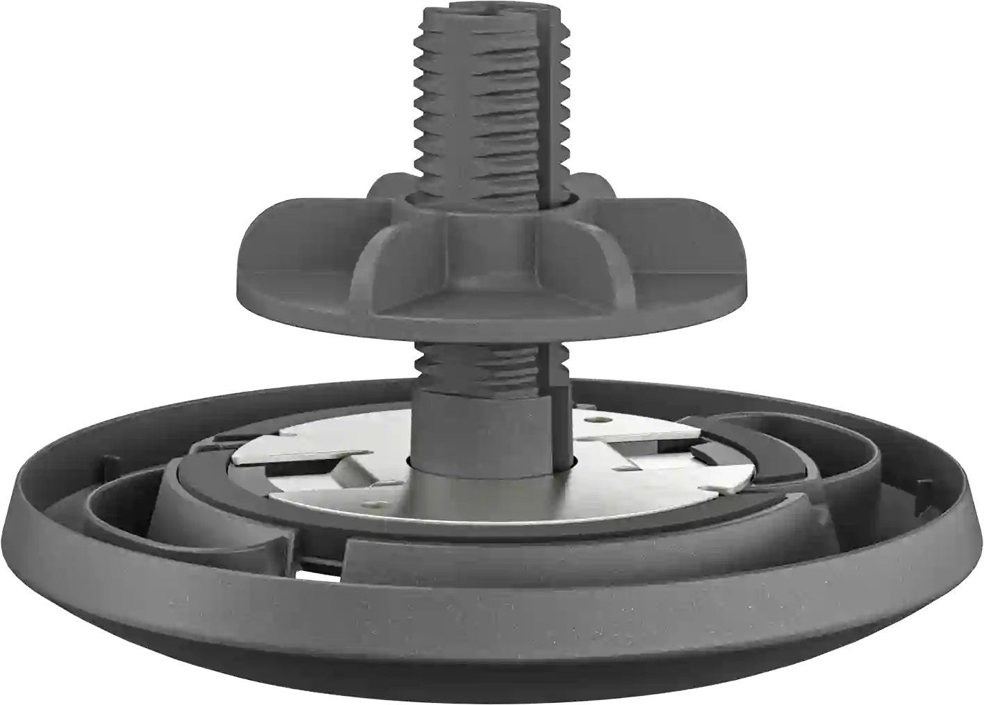 Крепление обеспечивает надежную фиксацию микрофонов на столах с толщиной крышки до 50 мм и аккуратную прокладку кабелей через отверстия диаметром 25–65 мм.