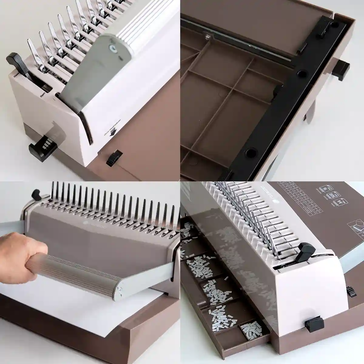 Регулировка глубины перфорации может переплетать как малые (до 100 листов), так и большие объемы бумажных блоков (до 400-500 листов). Также для удобства перфорации листов имеется ограничитель для бумаги формата А4 и А5.