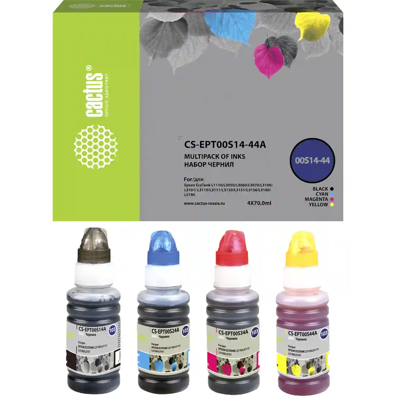Набор чернил CACTUS многоцветный (CS-EPT00S14-44A)