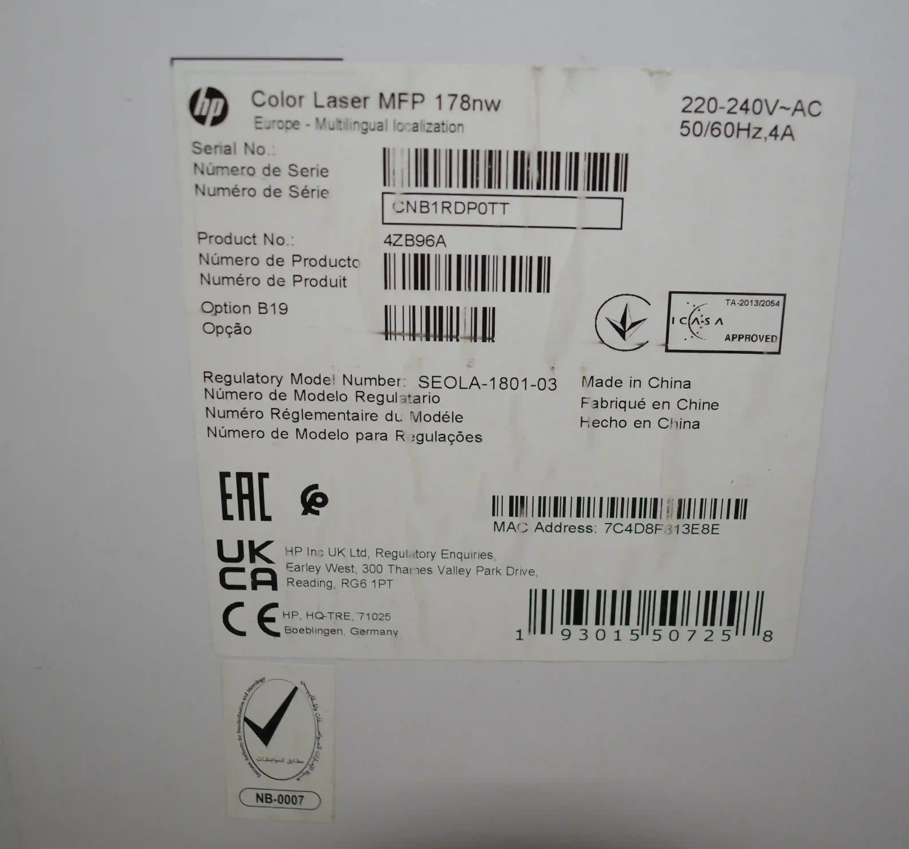 МФУ лазерное HP Color Laser 178nw (4ZB96A) k5 000038750