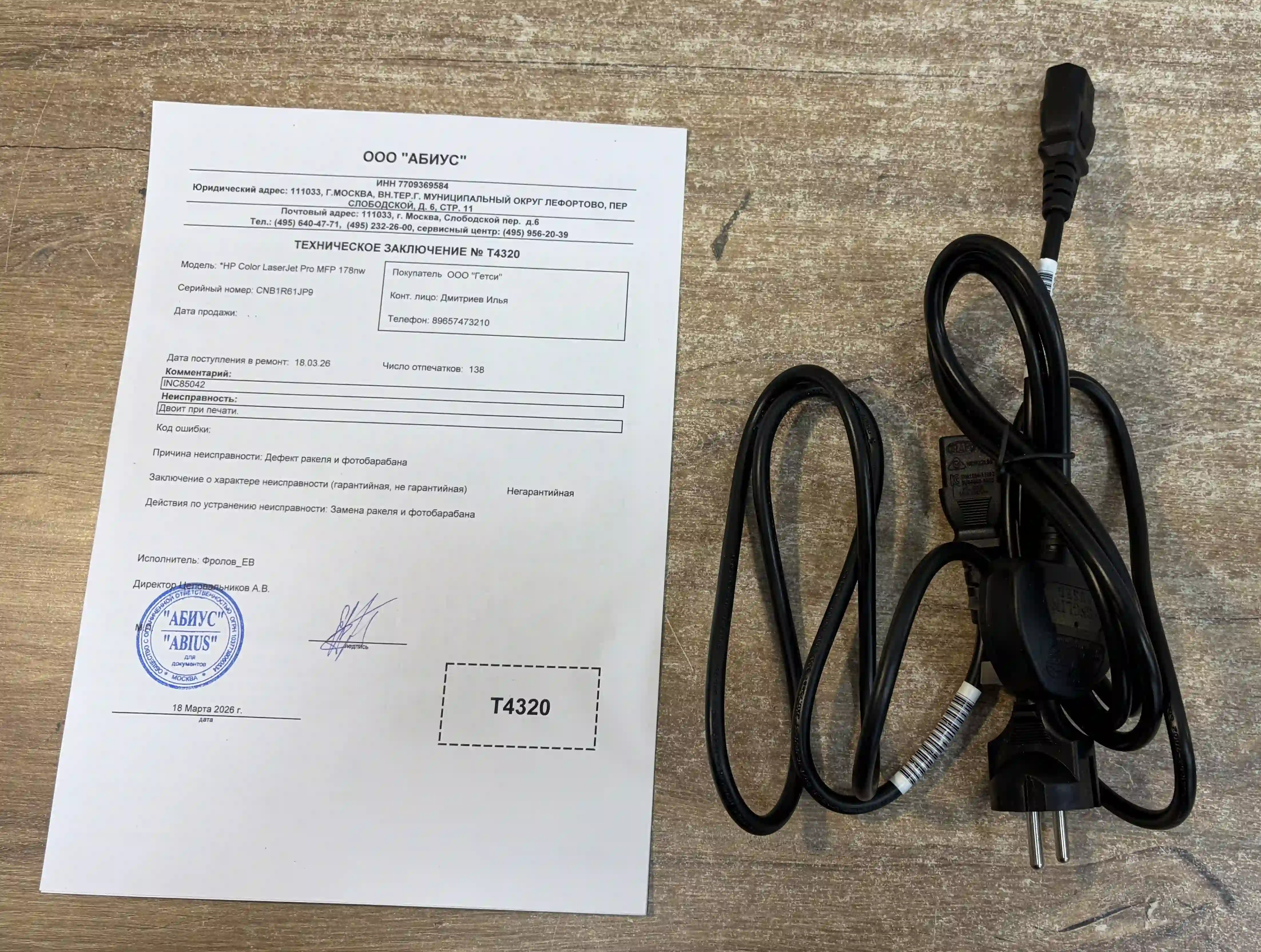 Комплектность: МФУ, документация, кабель-2шт, Картриджи установлены