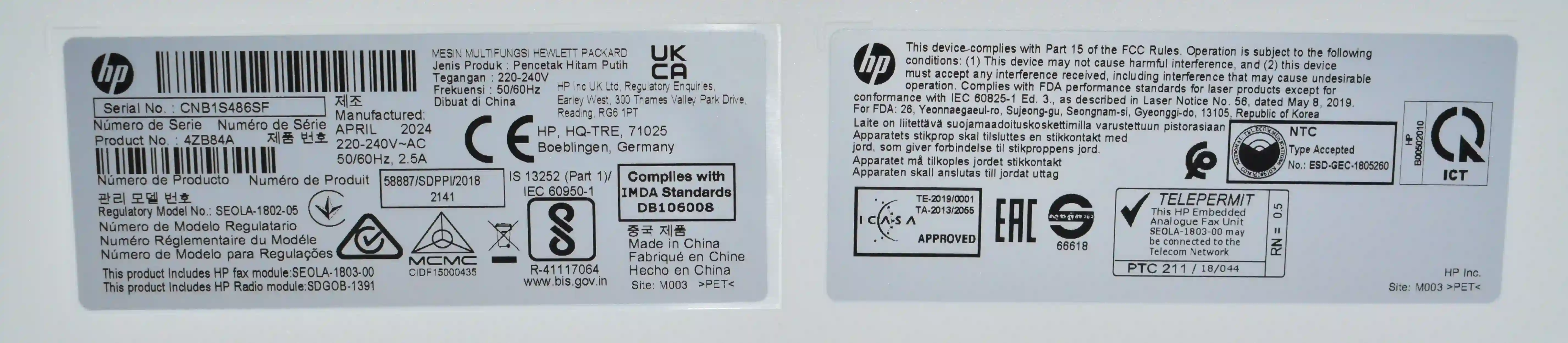Комплектность: документация,кабель 4 шт,установлены картриджи