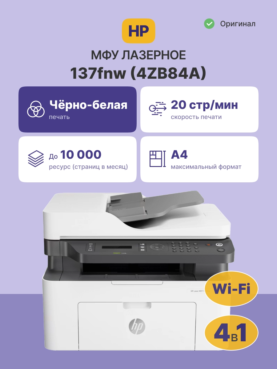 МФУ лазерное HP Laser 137fnw (4ZB84A)