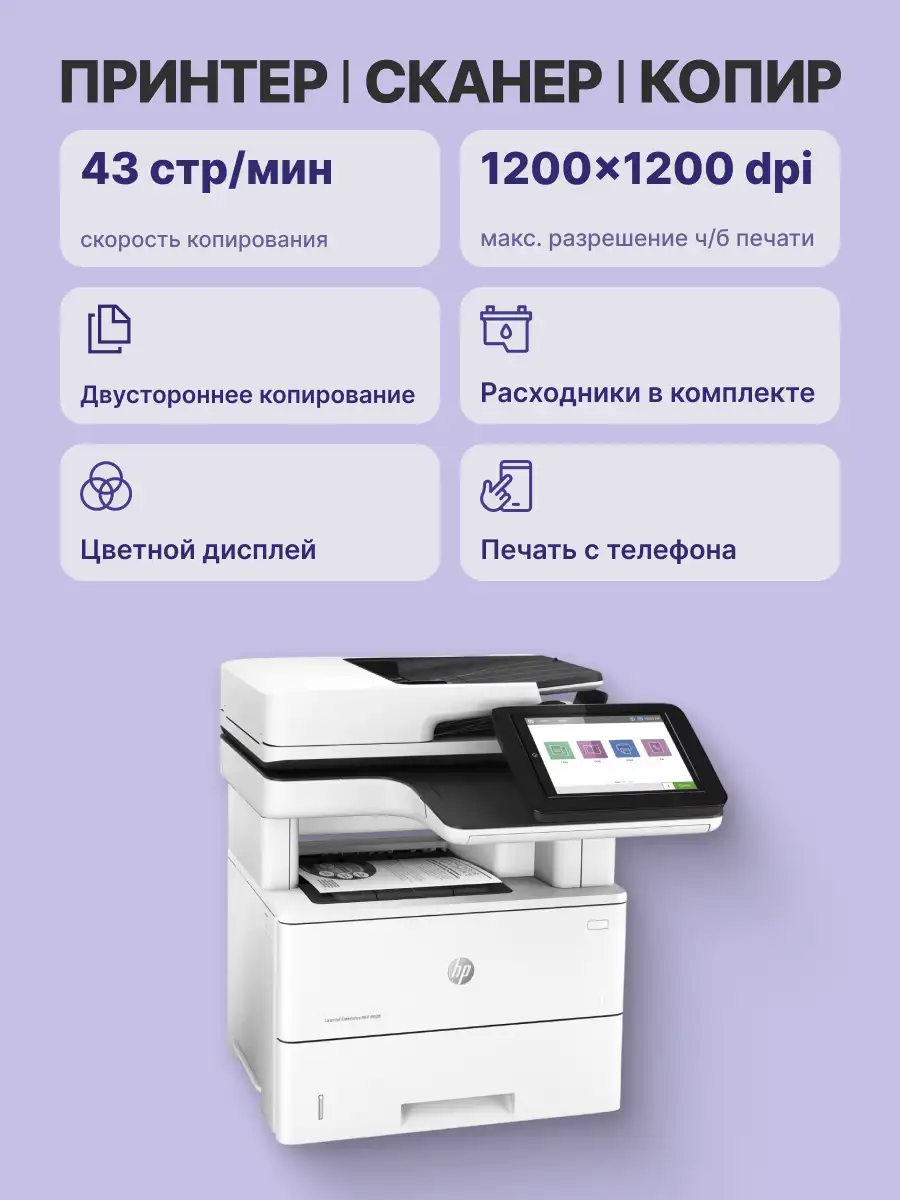Выберите МФУ HP LaserJet Enterprise, разработанное для безопасного и эффективного обслуживания бизнеса и позволяющее экономить энергию при использовании черного тонера HP EcoSmart Black. Это принтер, отвечающий требованиям вашего растущего бизнеса, на который можно полностью положиться.
