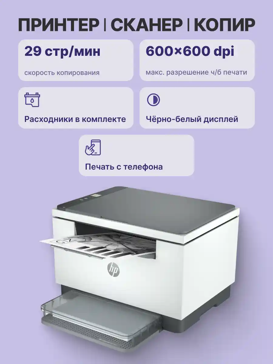 Высокопроизводительное МФУ с самой быстрой двусторонней печатью среди устройств HP данного класса, автоподатчиком и приложением HP Smart для экономии времени. Упрощенная настройка, более надежные подключения и невероятное удобство работы. Повышайте производительность с помощью этого компактного МФУ, которое оснащено автоподатчиком на 40 листов и двухдиапазонным адаптером Wi-Fi, а также отличается самой быстрой двусторонней печатью среди устройств HP данного класса. Сканируйте с высоким качеством прямо со своего смартфона, а также печатайте и экономьте время с помощью ярлыков в HP Smart, лучшем в своем классе приложении печати. Успешно справляйтесь с любыми проектами благодаря простой настройке и удобству управления процессом печати с помощью интуитивно понятных интеллектуальных кнопок и подсветки.