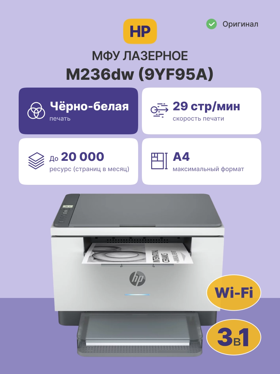 МФУ лазерное HP LaserJet M236dw (9YF95A)