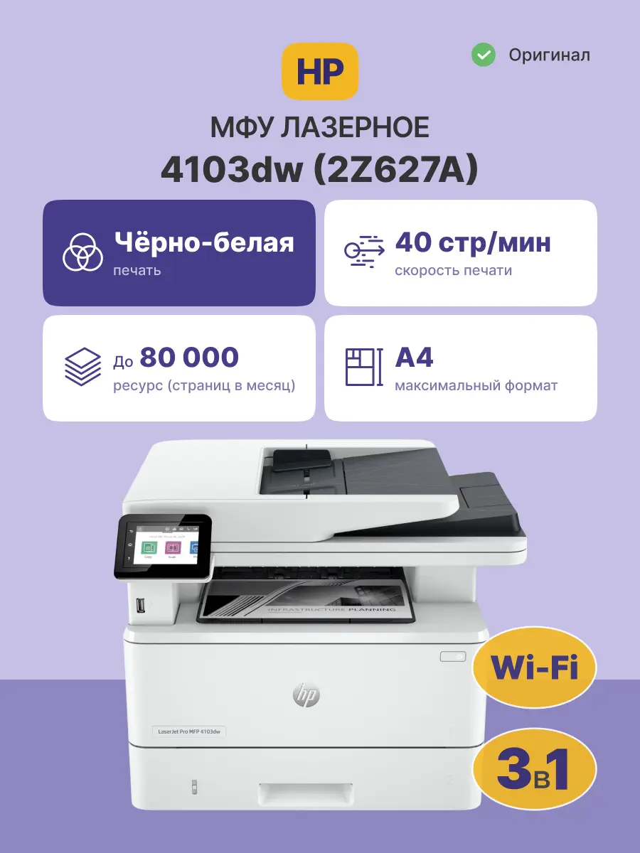 МФУ лазерное HP LaserJet Pro 4103dw (2Z627A)