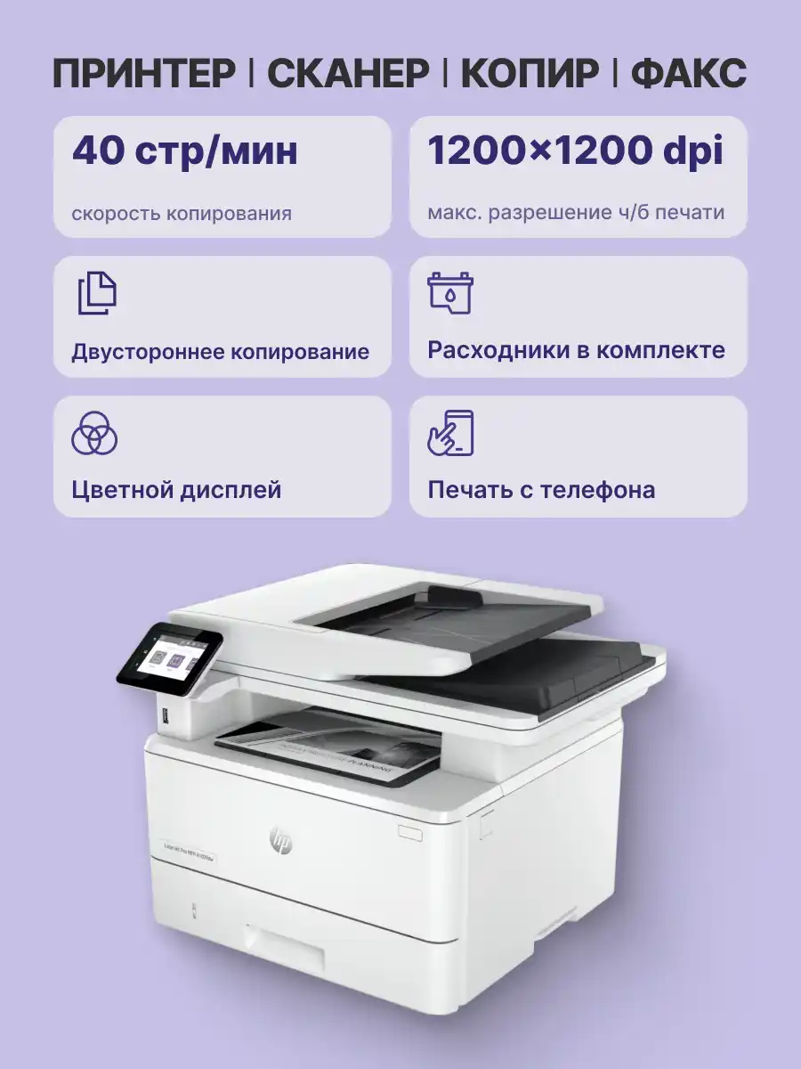 - Скорость ч/б печати A4: 40