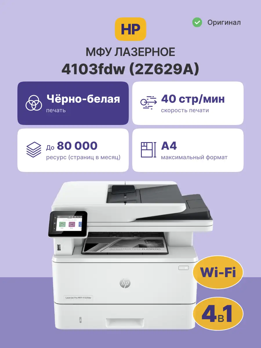 МФУ лазерное HP LaserJet Pro 4103fdw (2Z629A)