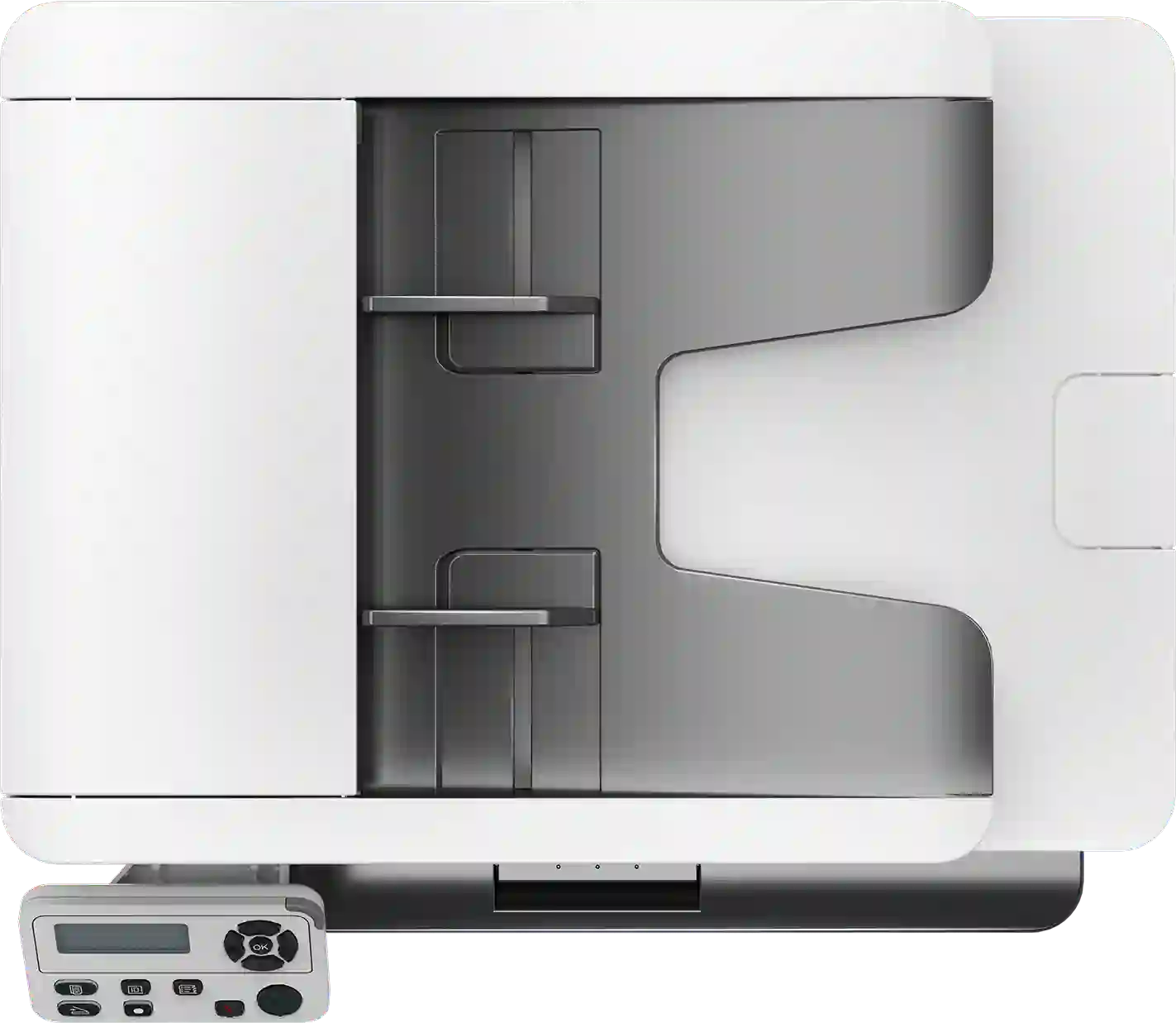 Функция сканирования реализована с помощью планшетного и протяжного сканера. Максимальное разрешение сканирования достигает 1200×1200 dpi, что позволяет получать высококачественные копии документов, фотографий или графики. Это удобно для работы с разными материалами — от текстовых документов до изображений или чертежей.