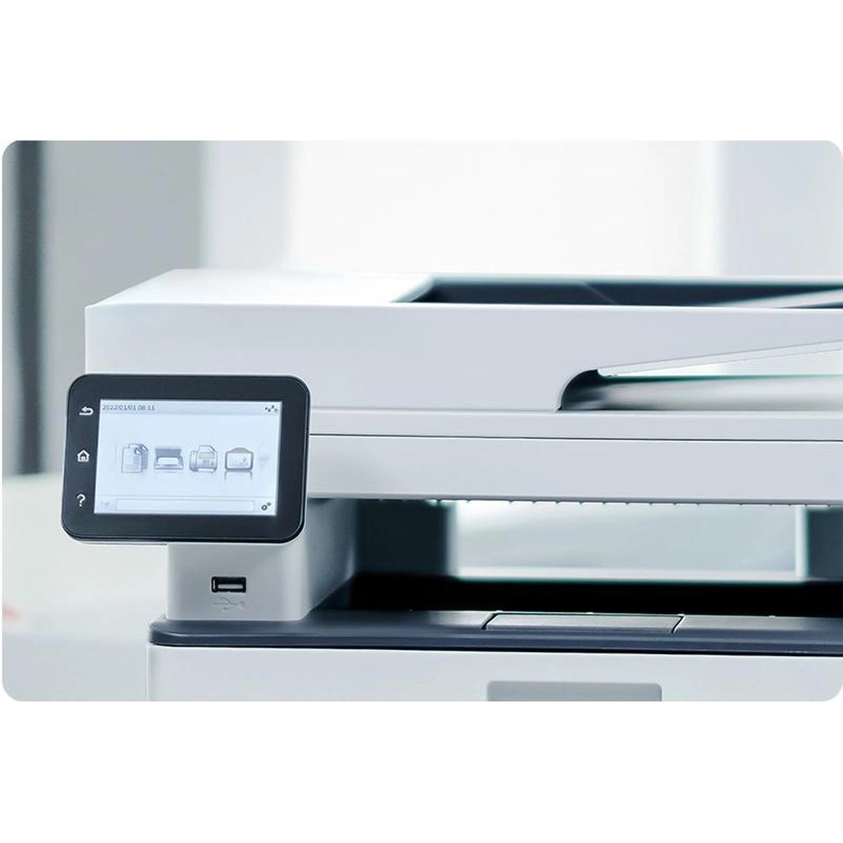 BM5201ADW оснащено сенсорным экраном, который упрощает управление функциями. Для подключения доступны USB 2.0 Hi-Speed, Gigabit Ethernet, WiFi (2.4G/5G) и Bluetooth. Это позволяет легко интегрировать устройство в любую IT-инфраструктуру и использовать его как с проводными, так и с беспроводными устройствами.