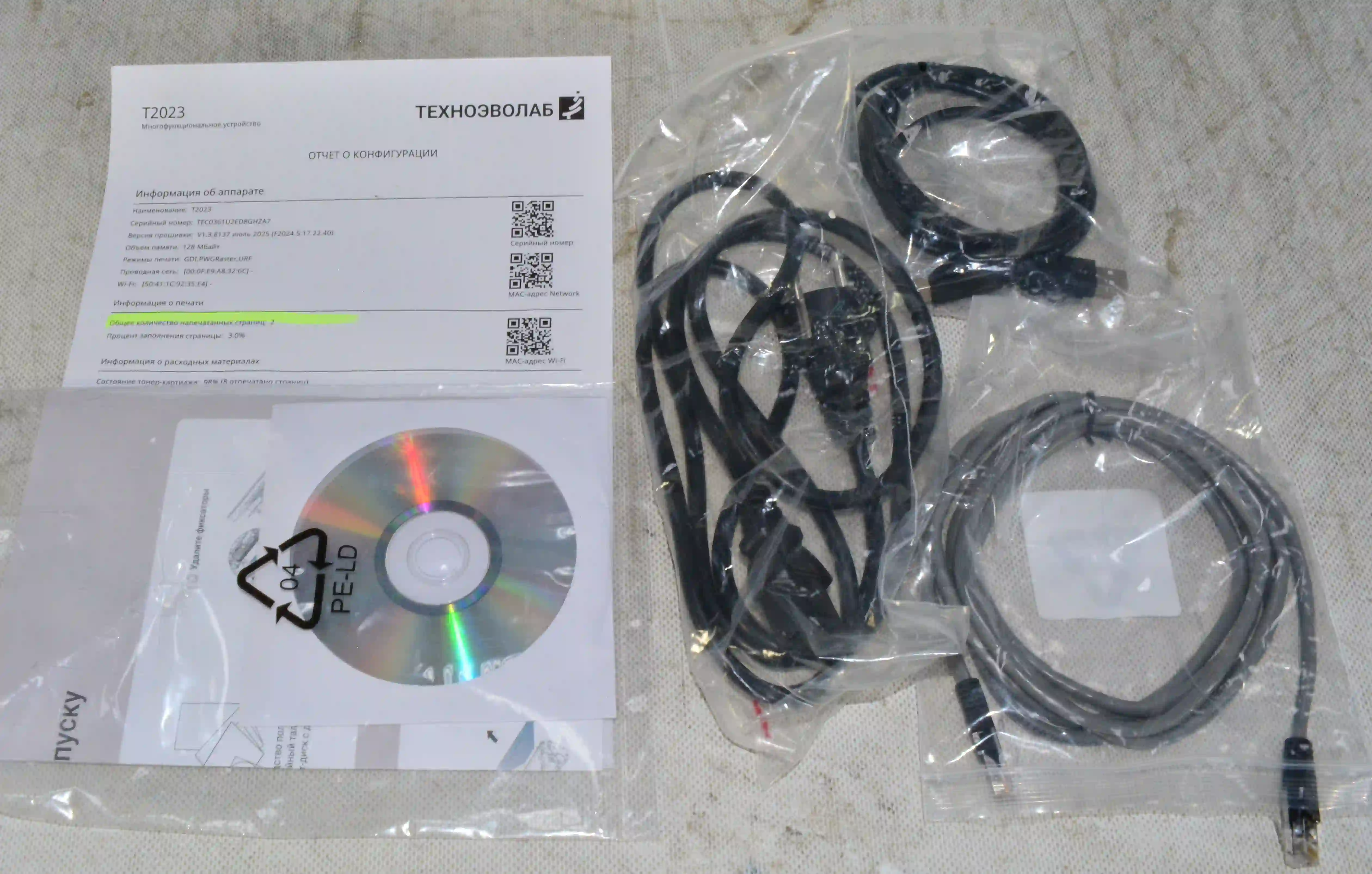 Комплектность: МФУ, провода, диск. документация