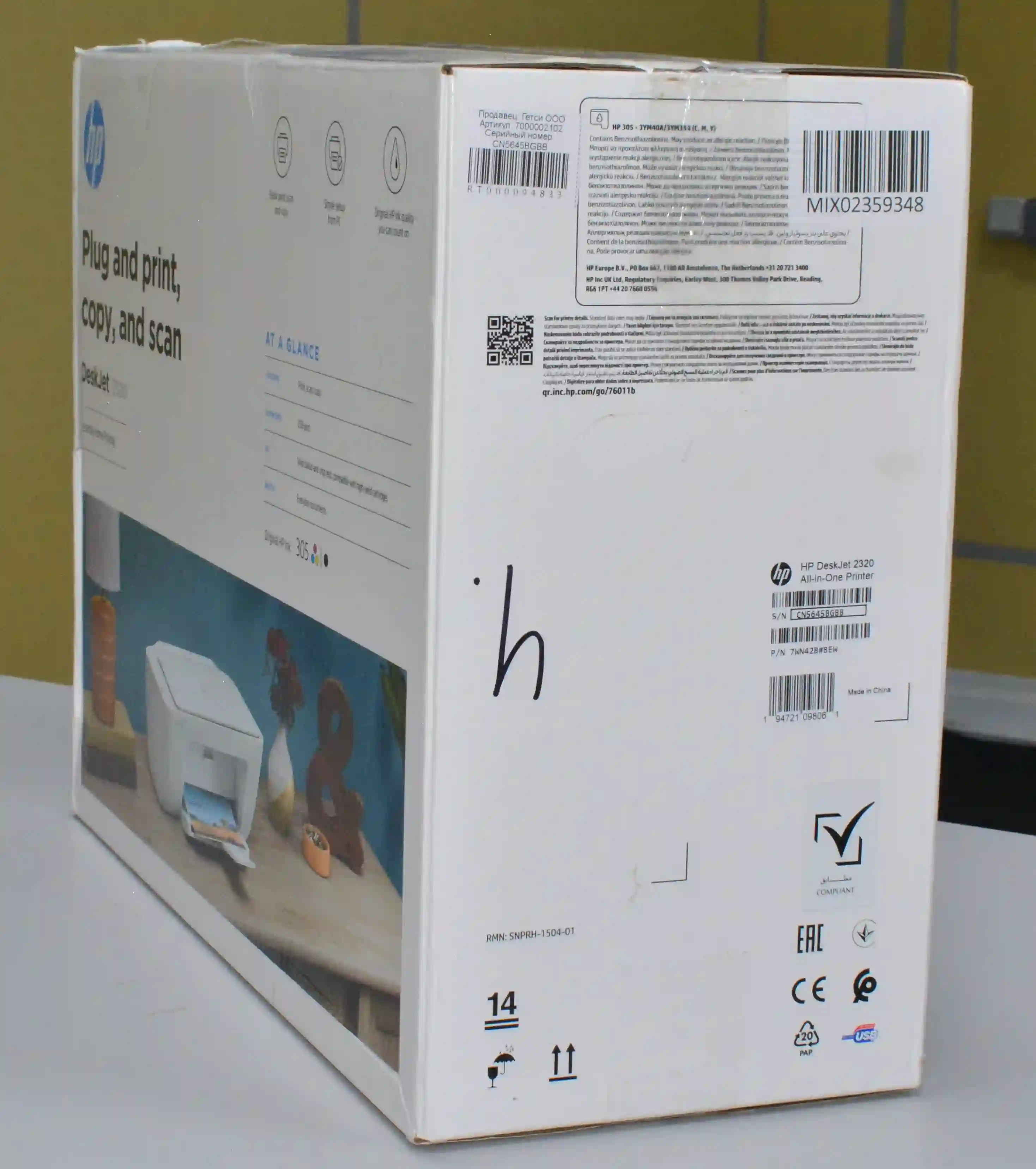 Комплектность: МФУ струйное ,документация,кабель питания не евро вилка 1 шт,(отсутствует кабель питания с евро вилкой,отсутствуют картриджи)