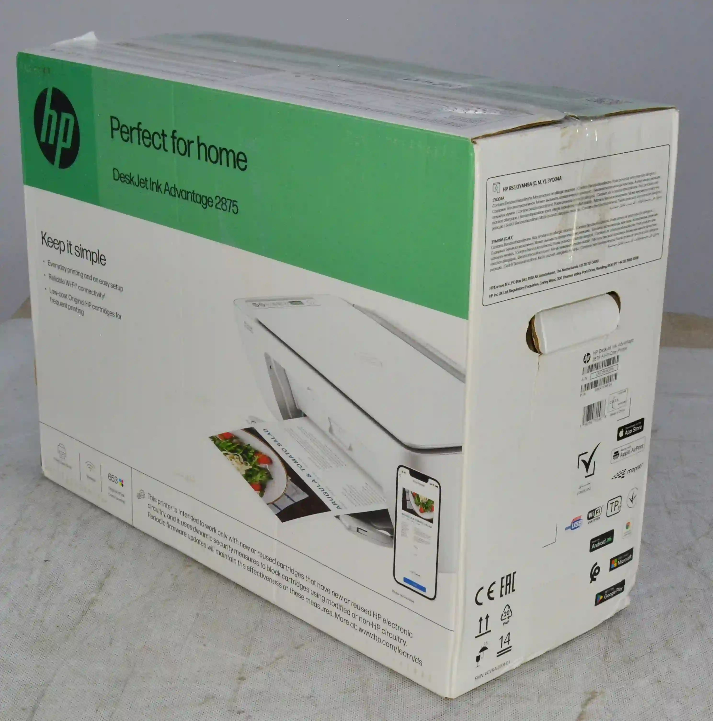 • Многофункциональность: Печать, сканирование и копирование — всё в одном устройстве. Принтер HP DeskJet Ink Advantage 2875 позволяет выполнять все необходимые задачи без усилий, что делает его отличным решением для вашего офиса или дома.
