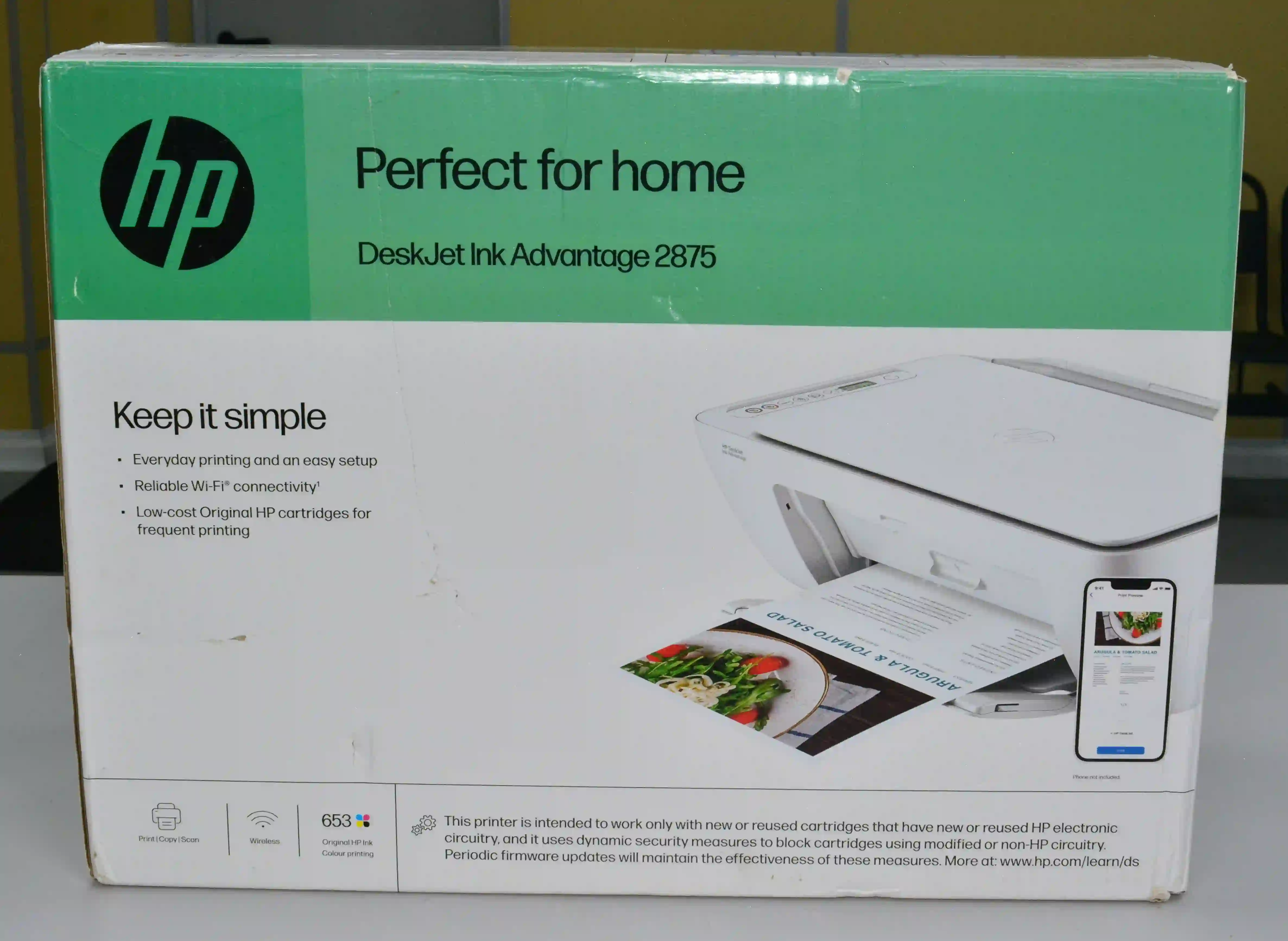 • Динамическая система безопасности: HP DeskJet Ink Advantage 2875 использует продвинутые меры безопасности, которые блокируют картриджи с неоригинальными чипами. Это обеспечивает надёжную работу принтера и защиту от подделок.