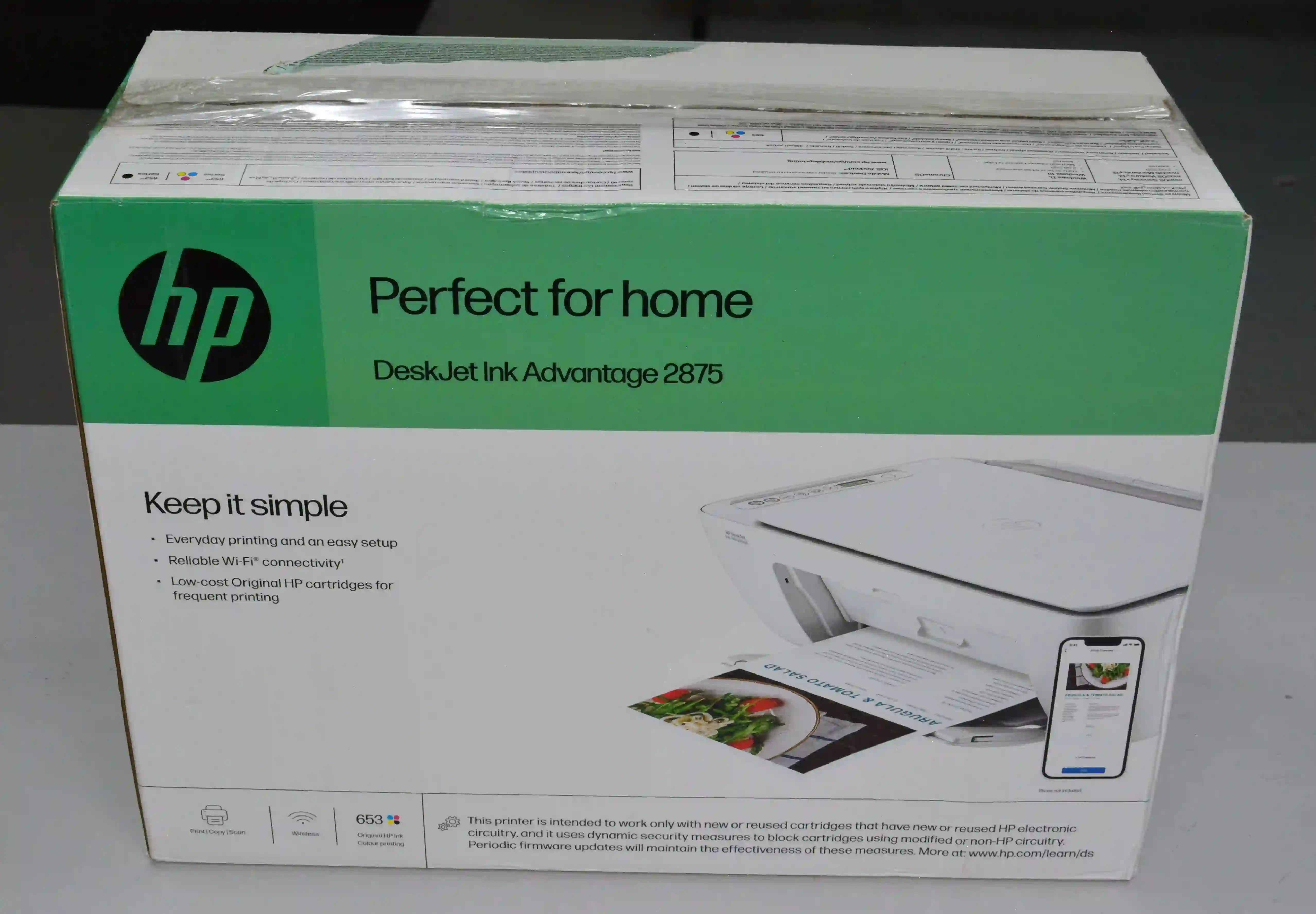• Динамическая система безопасности: HP DeskJet Ink Advantage 2875 использует продвинутые меры безопасности, которые блокируют картриджи с неоригинальными чипами. Это обеспечивает надёжную работу принтера и защиту от подделок.