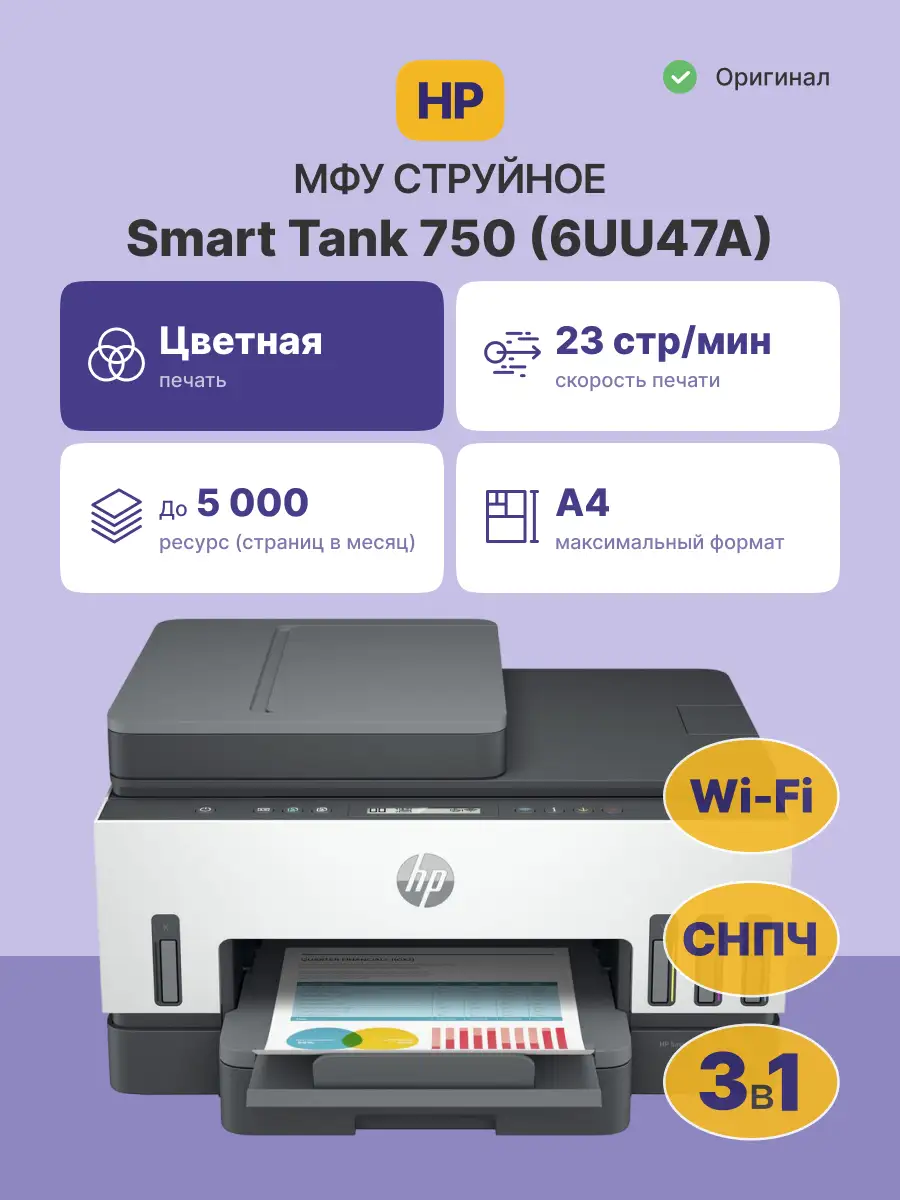 МФУ струйное HP Smart Tank 750 (6UU47A)