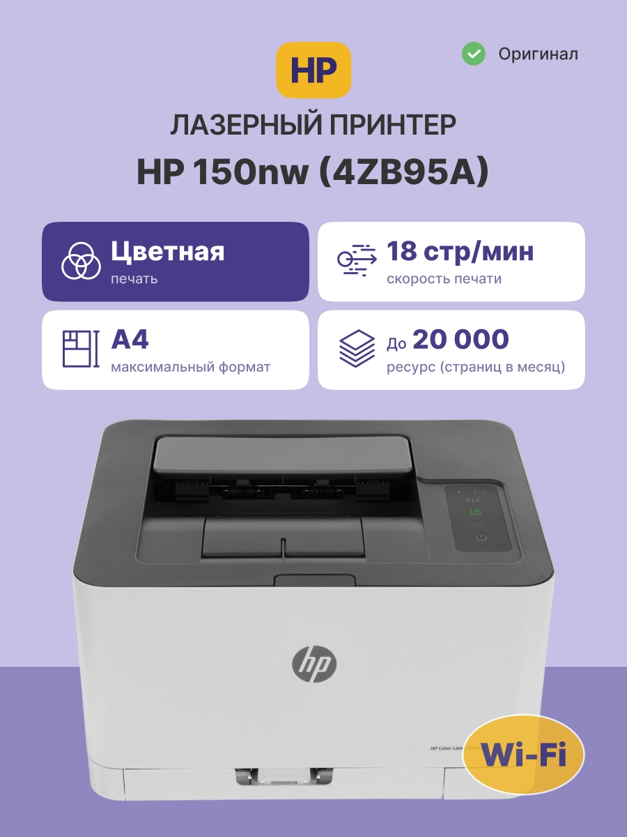 Принтер лазерный HP Color Laser 150nw (4ZB95A)