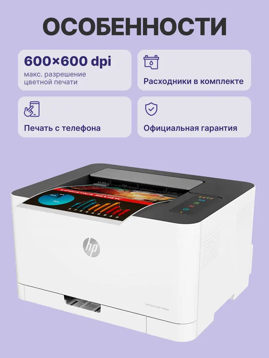 HP Color Laser 150nw — самый компактный цветной лазерный принтер в своем классе.