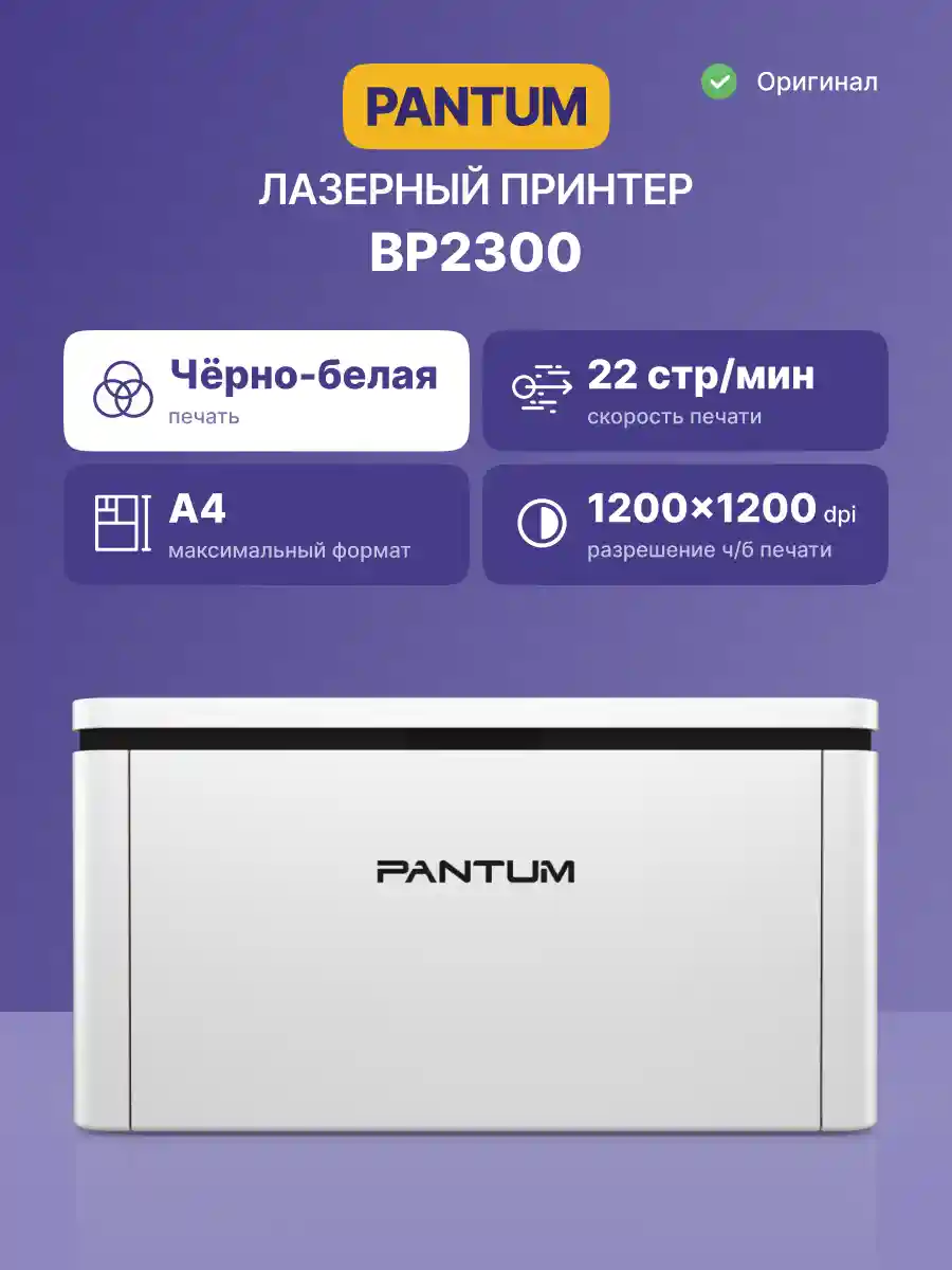 Принтер Pantum BP2300 — это компактное и надёжное монохромное устройство формата A4, выполненное в лаконичном дизайне. Идеально подходит для дома и офиса, где важны простота, производительность и доступность.