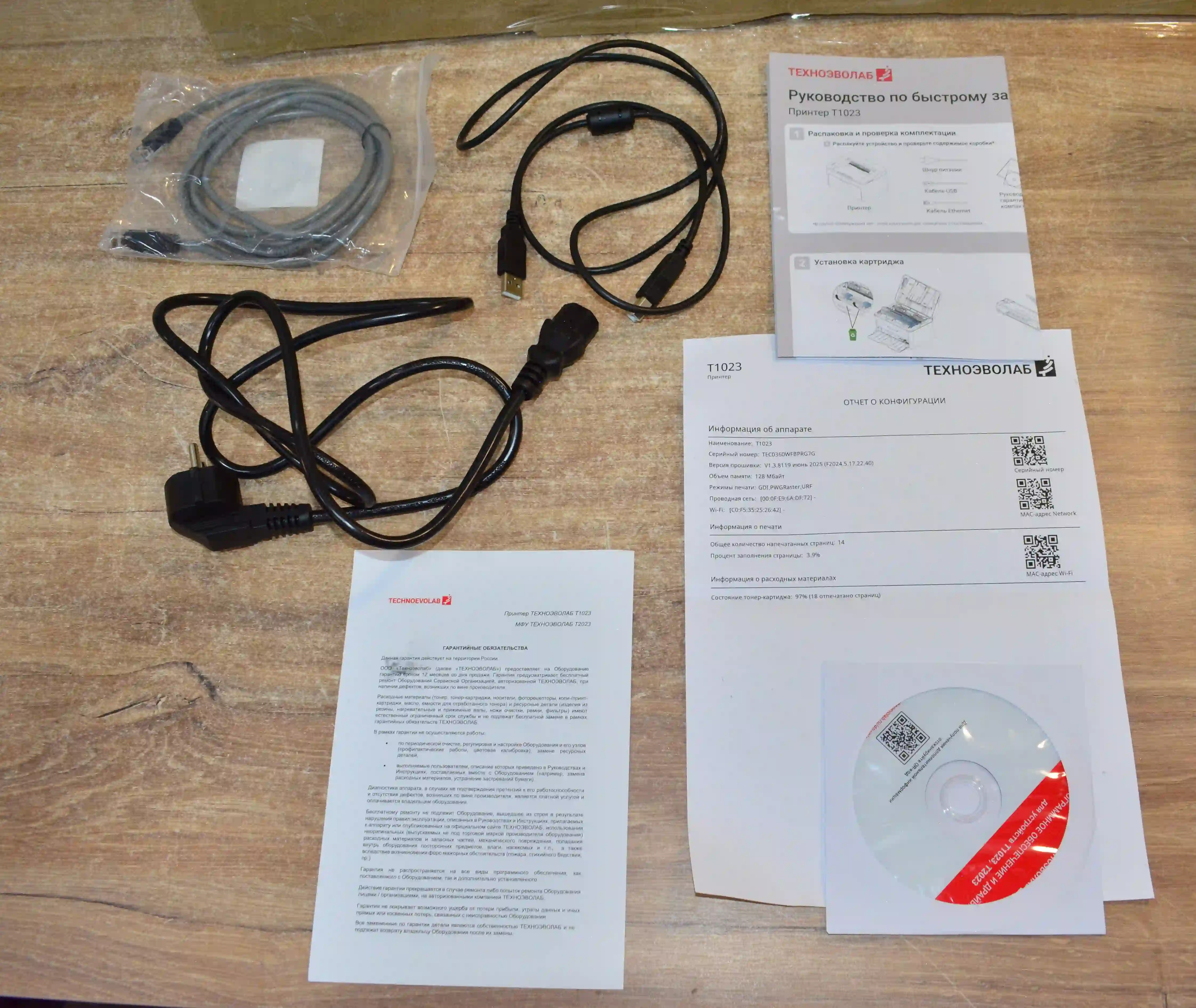 Комплектность: принтер, 3 кабеля, документация, диск