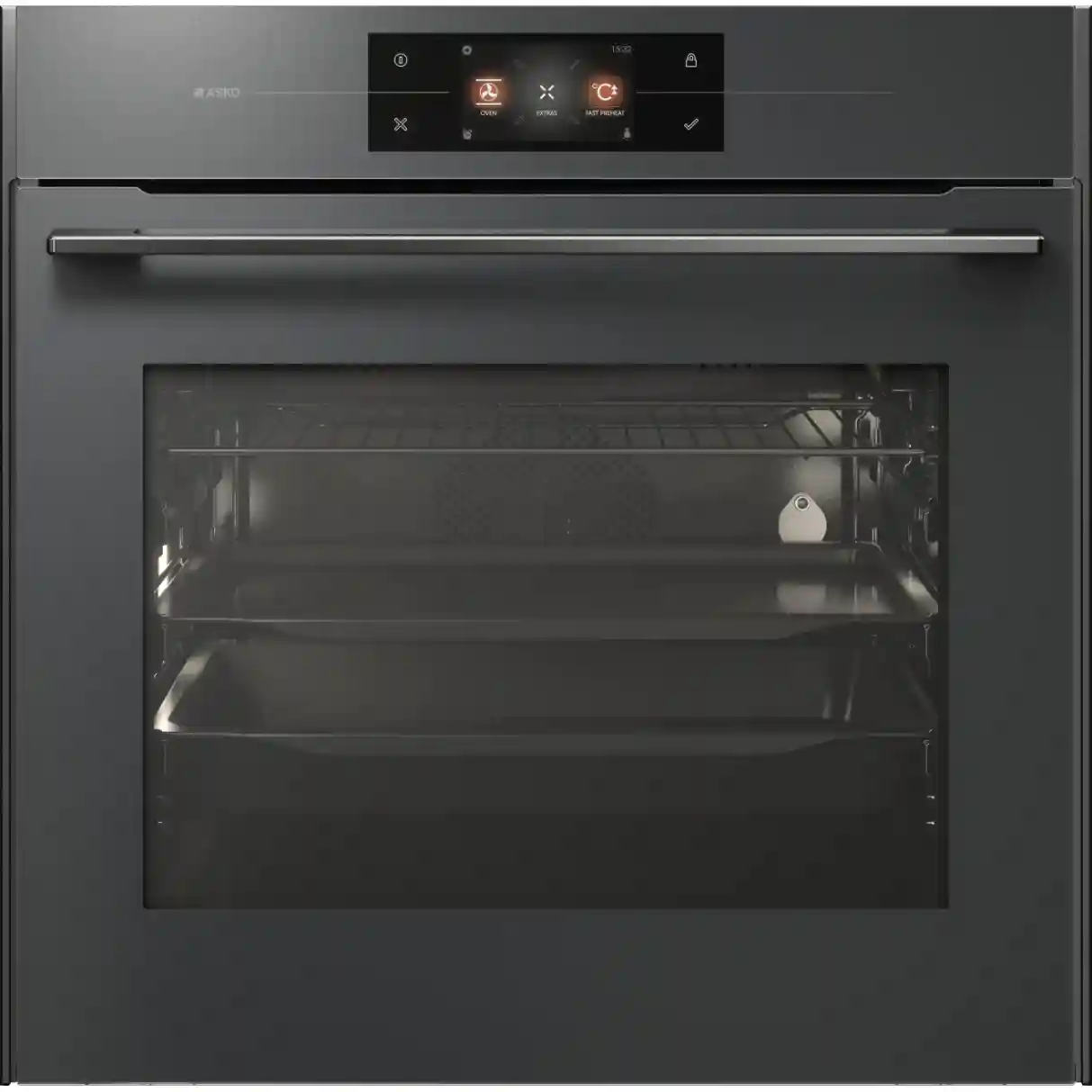 Asko OP8678GG выполнена в стильном сером графитовом цвете, который гармонично вписывается в современные кухни. Сенсорный дисплей с интуитивным управлением позволяет легко выбирать режимы и настраивать параметры готовки.