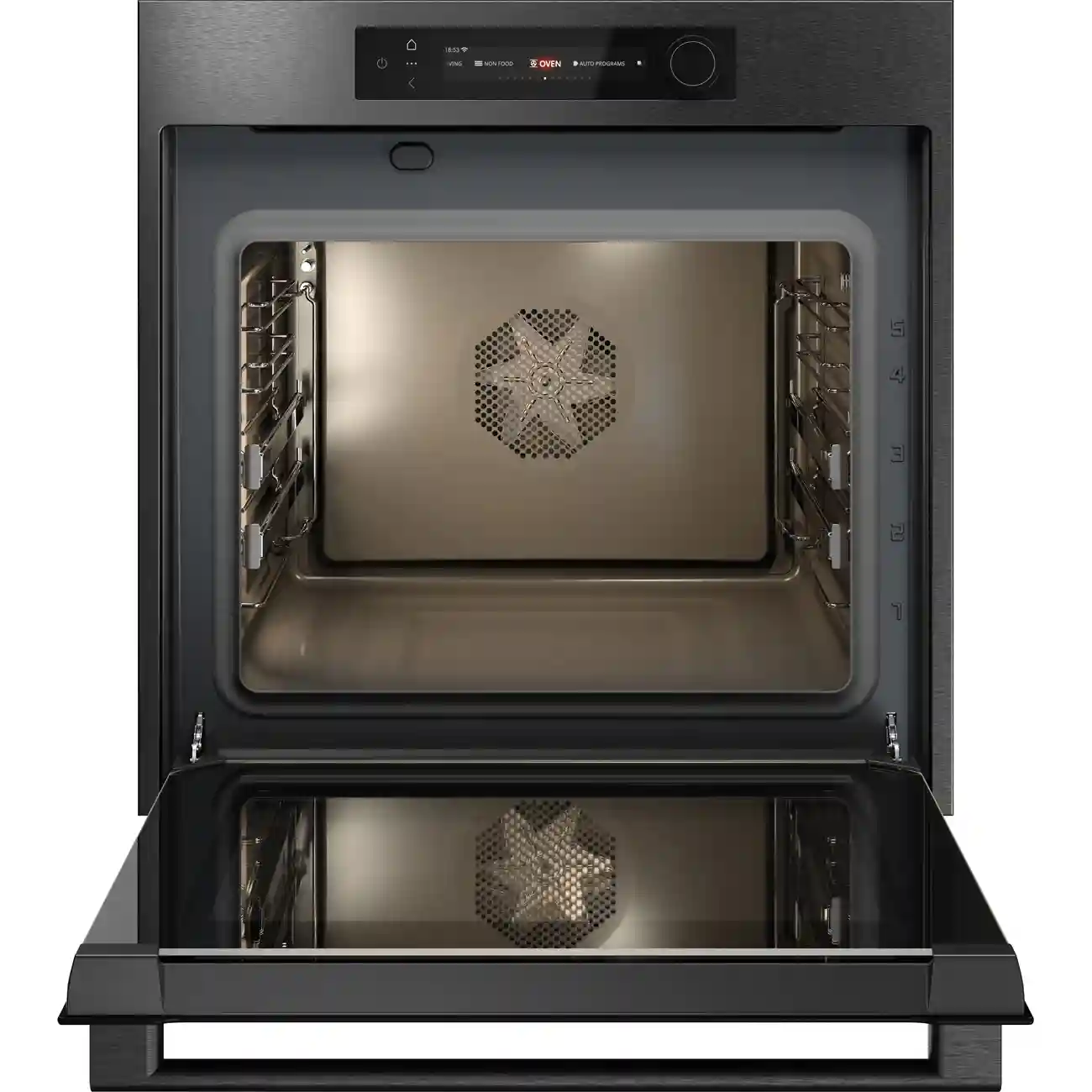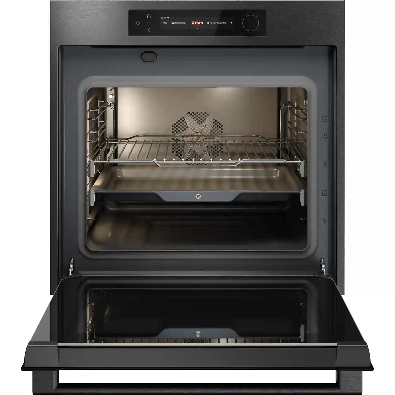 Стильный цвет Black Steel гармонично впишется в любой современный интерьер кухни, добавляя ей роскоши и функциональности. Внутренняя LED-подсветка обеспечивает отличную видимость, позволяя контролировать процесс приготовления без необходимости открывать дверцу.