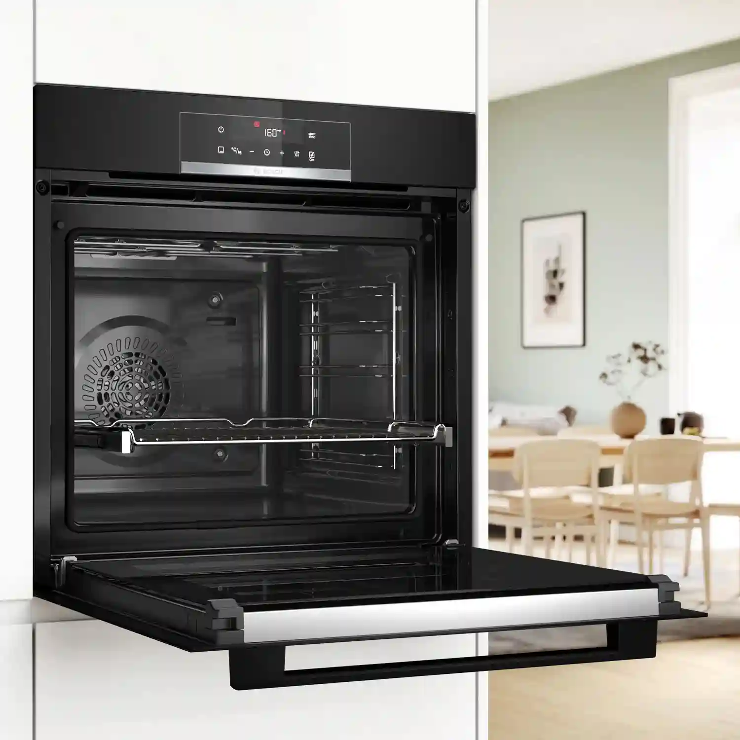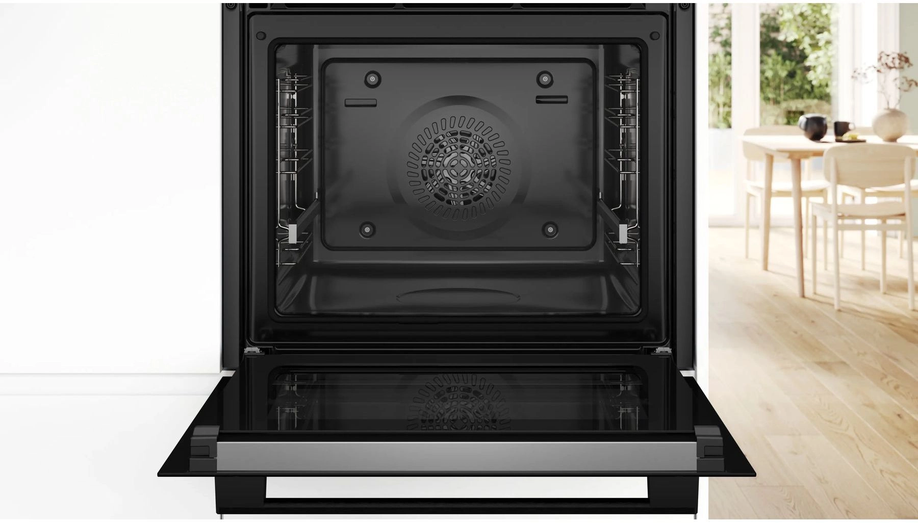Встраиваемый духовой шкаф Bosch HQG572EB3 с функцией добавления. Добавление пара во время выпечки хлеба, например, улучшает результат. Пар не допускает высыхание продуктов, а выпечка красиво подрумянивается, сохраняя свою сочность. Добавьте воду в емкость, расположенную в нижней камере духовки, и включите функцию «конвекция с паром». Емкость можно вынуть и вымыть в посудомоечной машине. Восемь режимов нагрева и функция AutoPilot с 10 предустановленными программами приготовят еду на уровне профессионального повара. Для безопасности извлечения противней предусмотрены телескопические направляющие, установленные на одном уровне. Для закрытия двери достаточно легкого толчка, и механизм автоматически замедляет движение двери, закрывая ее тихо и плавно.