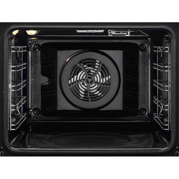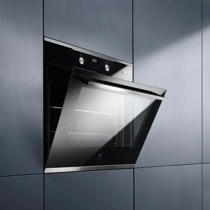 Для охлаждения стенок встраиваемого шкафа и ручки в конструкции имеется вентилятор. Дверца с двойным стеклом исключает риск получения ожога. После окончания приготовления пищи и работы таймера устройство отключается автоматически.