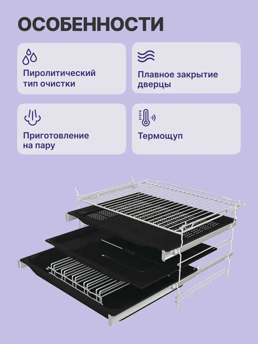 Готовите блюда внушительных размеров? Благодаря инновационной конструкции духовка стала больше и шире. На противнях теперь помещается больше продуктов, а современные технологии обеспечивают равномерное приготовление на всех уровнях.