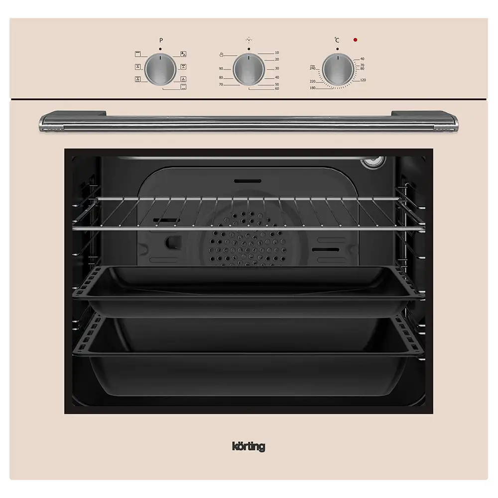 Специальный тангенциальный вентилятор установлен во всех духовых шкафах Körting. Боковые стенки духового шкафа постоянно охлаждаются благодаря циркуляции холодного воздуха. Использование системы автоматического охлаждения позволяет поддерживать температуру боковых поверхностей духового шкафа на низком уровне для безопасного использования в кухонной мебели. - Автоматическое отключение