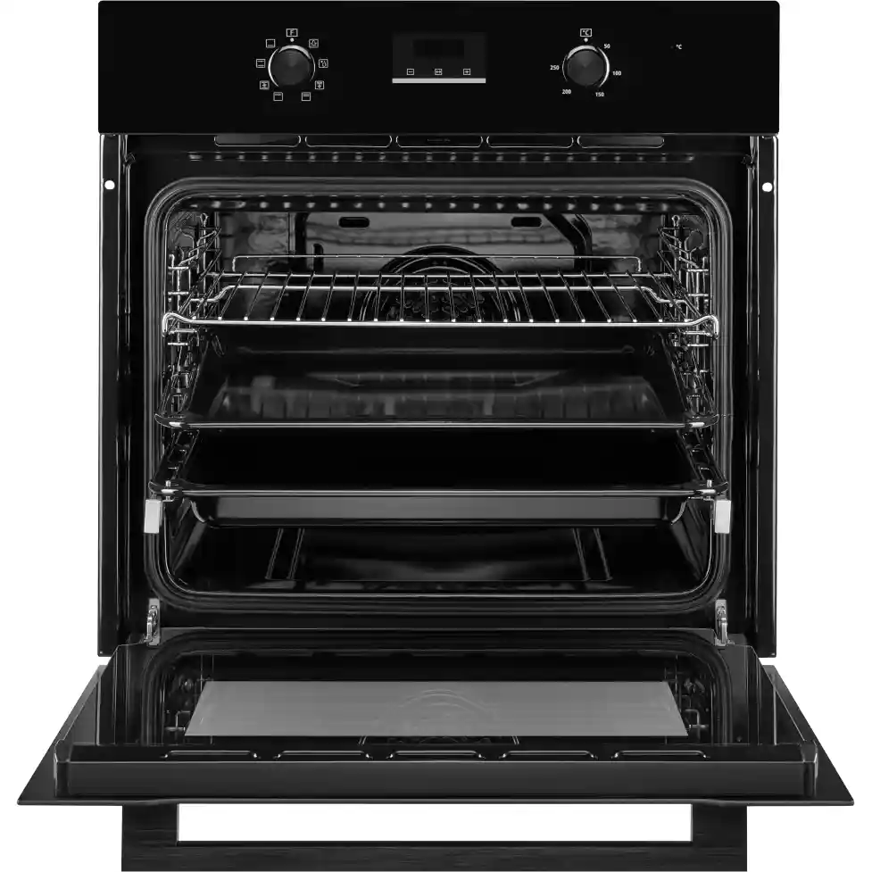 Дверца духового шкафа и внутреннее стекло снимаются, что значительно упрощает процесс очистки. Хромированные направляющие для противней обеспечивают легкое скольжение посуды, а съемная конструкция дает возможность быстро извлекать их для мытья. Три слоя закаленного стекла в дверце эффективно удерживают тепло внутри камеры и гарантируют безопасность при работе с высокими температурами.