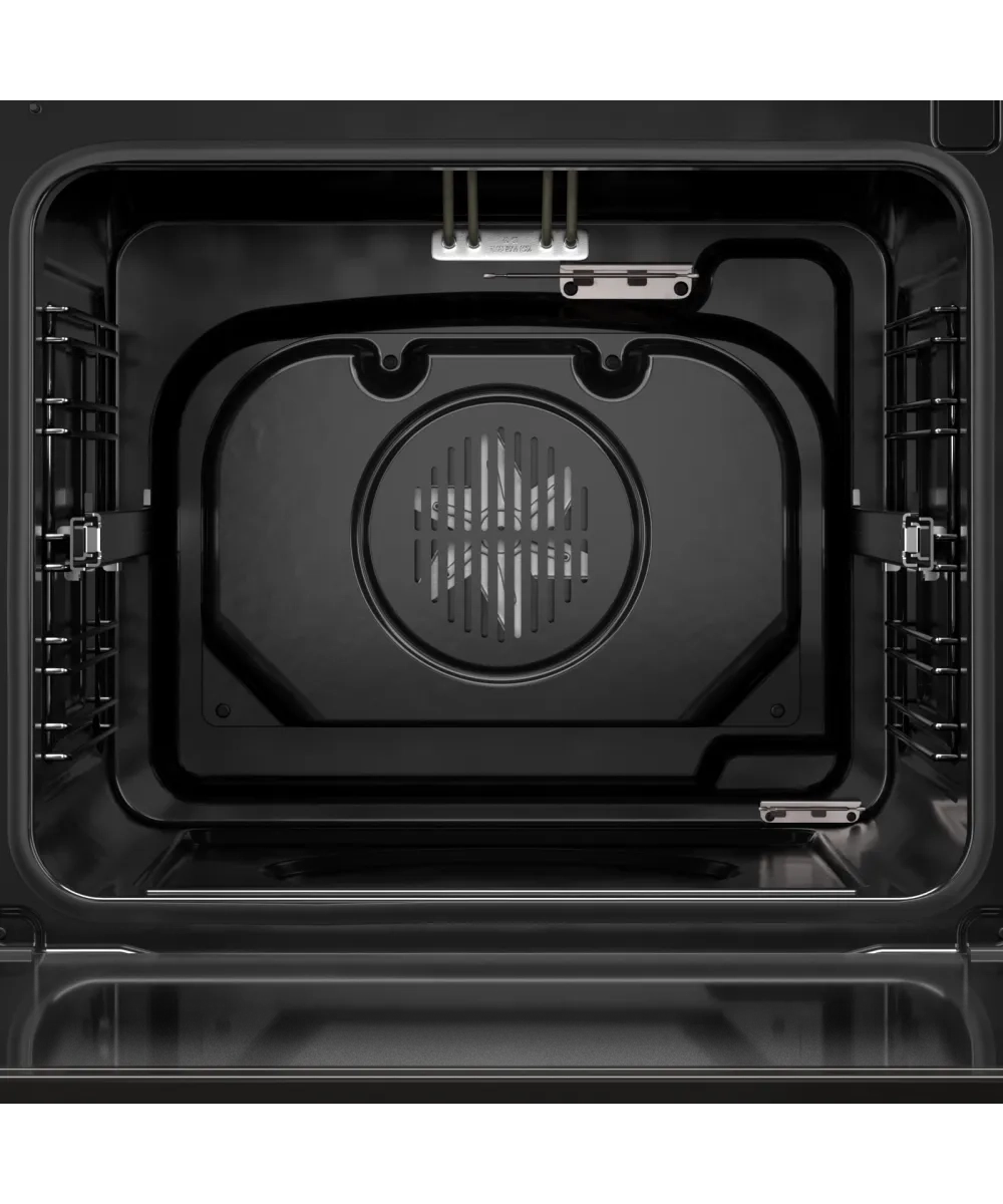 Продуманная эргономика делает использование духовки максимально удобным. Телескопические направляющие установлены на одном уровне — при открывании дверцы противни выдвигаются автоматически, и вам не нужно тянуться вглубь горячей камеры, чтобы проверить готовность блюда. Доводчик двери обеспечивает мягкое и бесшумное закрывание, исключая риск хлопка или неполного прилегания.