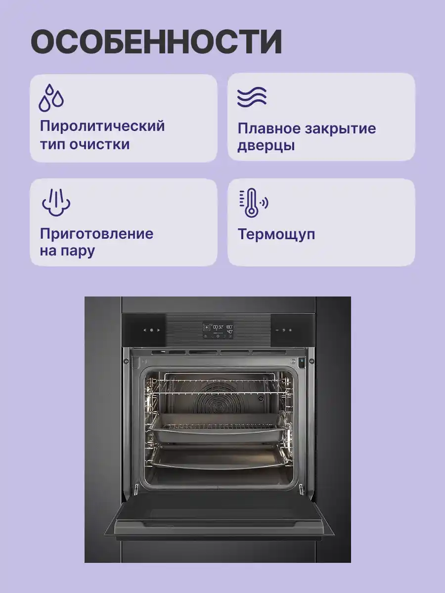 Функция приготовления на камне подходит для пиццы. Барбекю позволяет сделать сочные и хрустящие блюда. Аэрогриль предназначен для жарки продуктов с минимальным количеством масла. Для приготовления здоровой пищи можно комбинировать режимы с паром. Чтобы еда оставалась горячей, достаточно включить программу поддержания тепла.