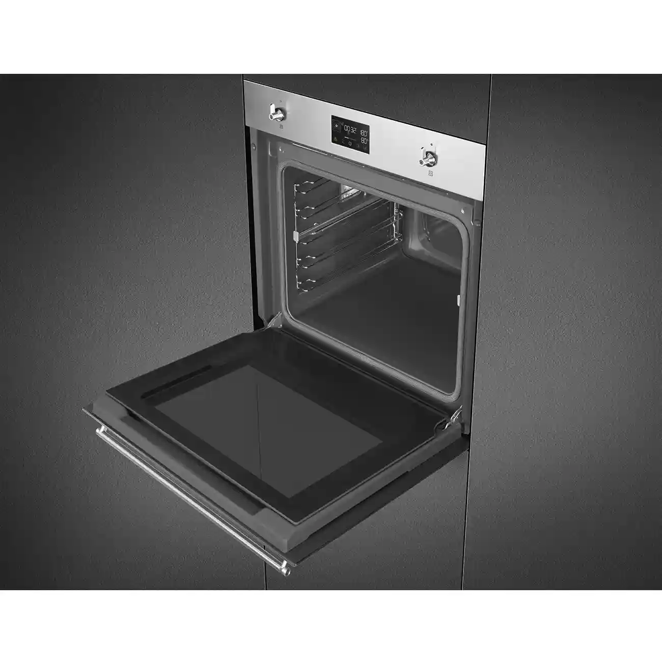 Электрический духовой шкаф Smeg SOP6302S2PX поддерживает тангенциальное охлаждение, что предотвращает перегревание корпуса. Блокировка клавиш помогает избежать случайного изменения настроек. При пиролизе срабатывает автоматическая блокировка дверцы.