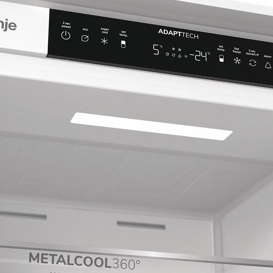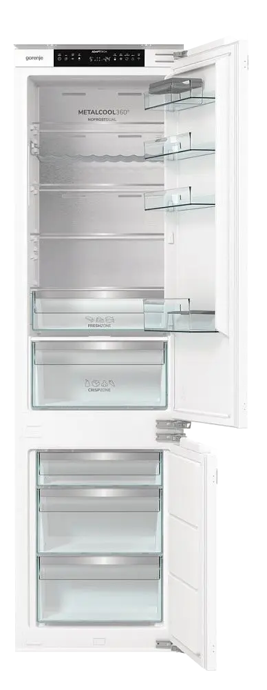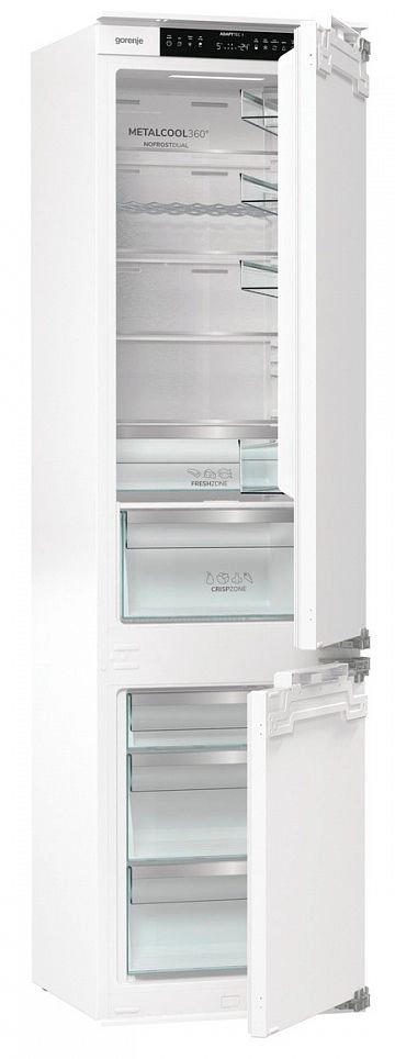 GORENJE NRKI519E82WF — вместительный встраиваемый холодильник высотой 193 см. Модель оснащена жестким креплением, что обеспечивает надежную фиксацию и стабильность конструкции при установке в кухонную мебель.