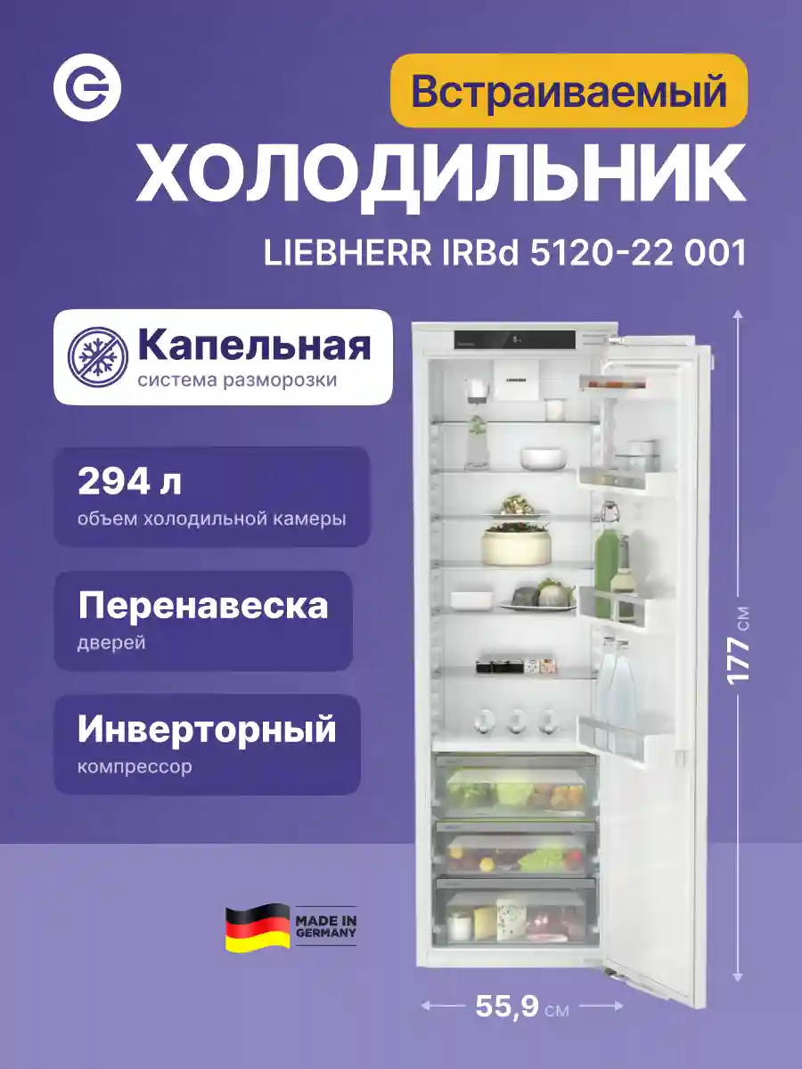 Встраиваемый холодильник Liebherr IRBd 5120-22 001 из серии Plus — это сочетание высокой функциональности и передовых технологий, созданное для удовлетворения потребностей современных пользователей. Этот холодильник станет отличным дополнением к любой кухне, обеспечивая высокую производительность.