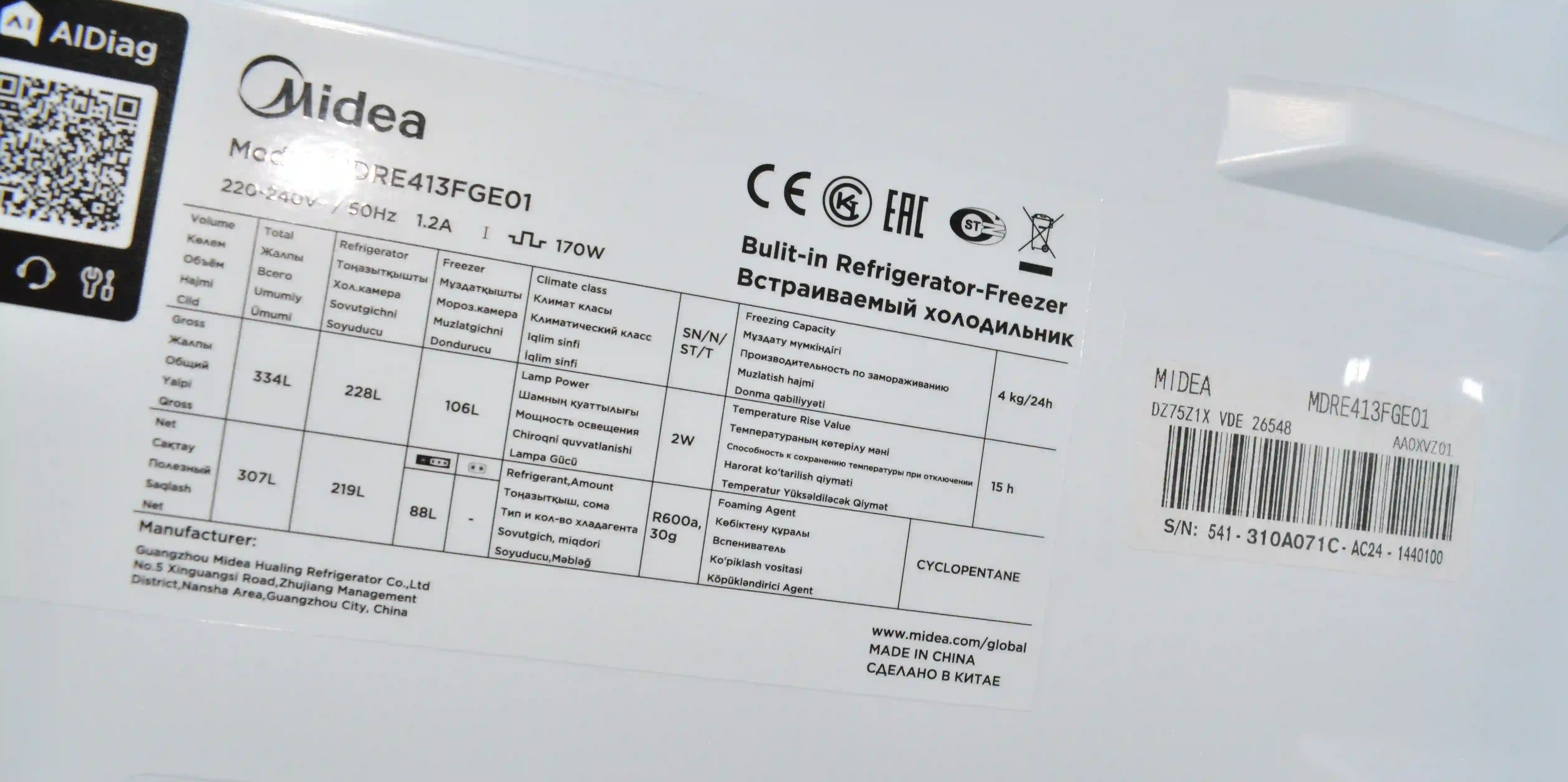 Midea MDRE413FGE01 — это надежный выбор для тех, кто ценит комфорт, стиль и технологии. Этот холодильник станет гармоничным дополнением вашего дома и обеспечит долгосрочное удобство хранения продуктов.