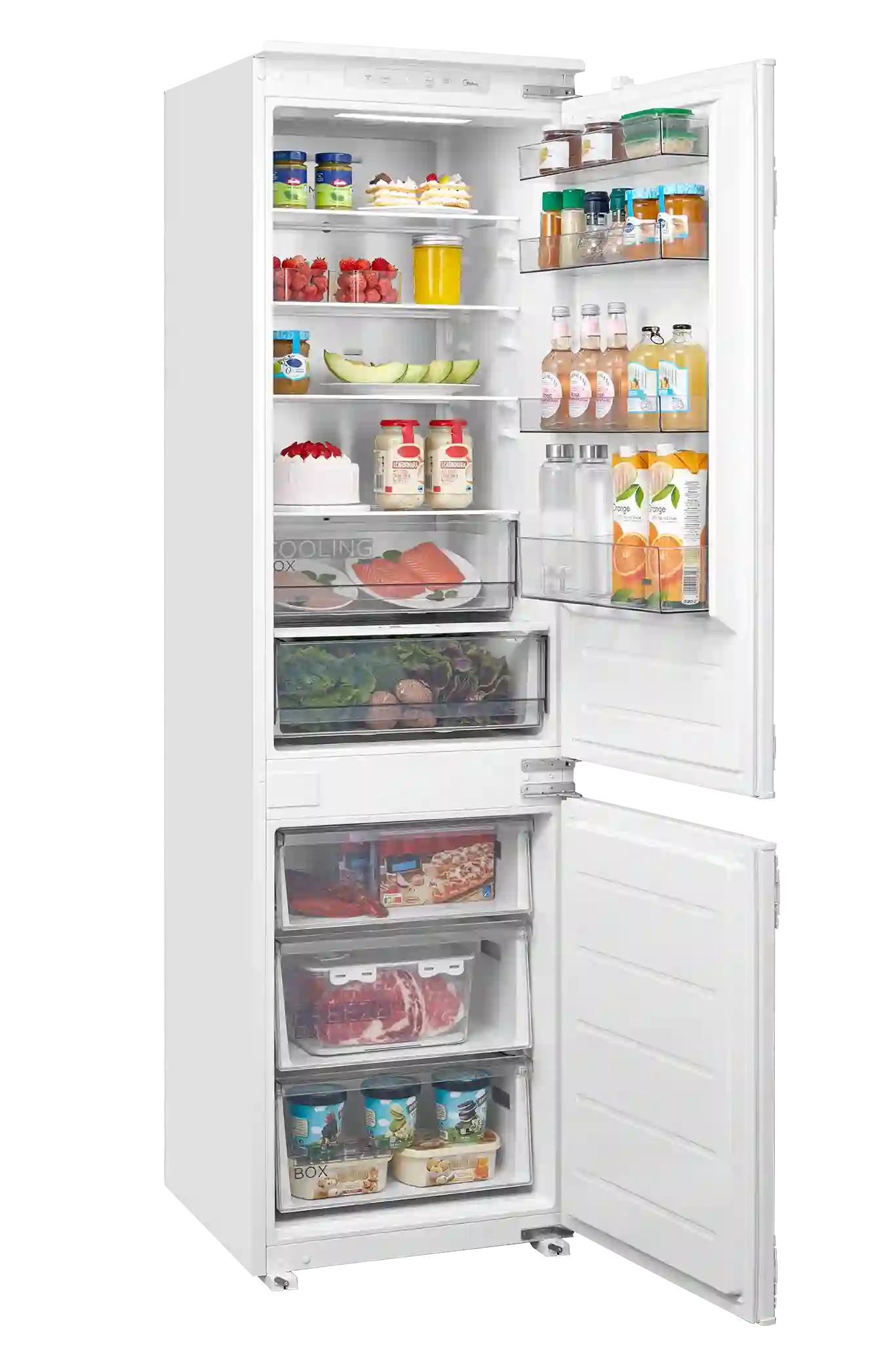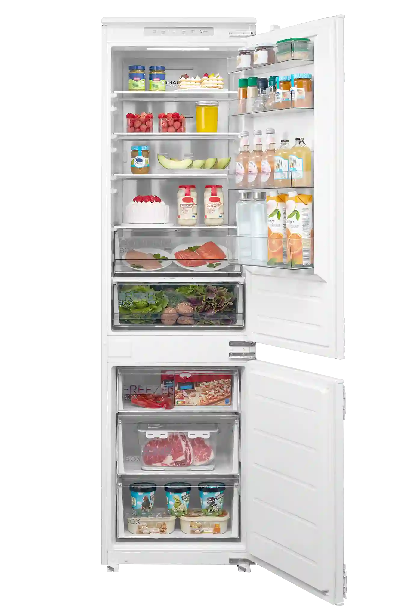 Встраиваемый холодильник Midea MDRE415FGE01 — это гармоничное сочетание функциональности и современного дизайна. Элегантная модель в белом цвете идеально впишется в кухонный гарнитур, обеспечивая аккуратный внешний вид и удобство ежедневного использования.