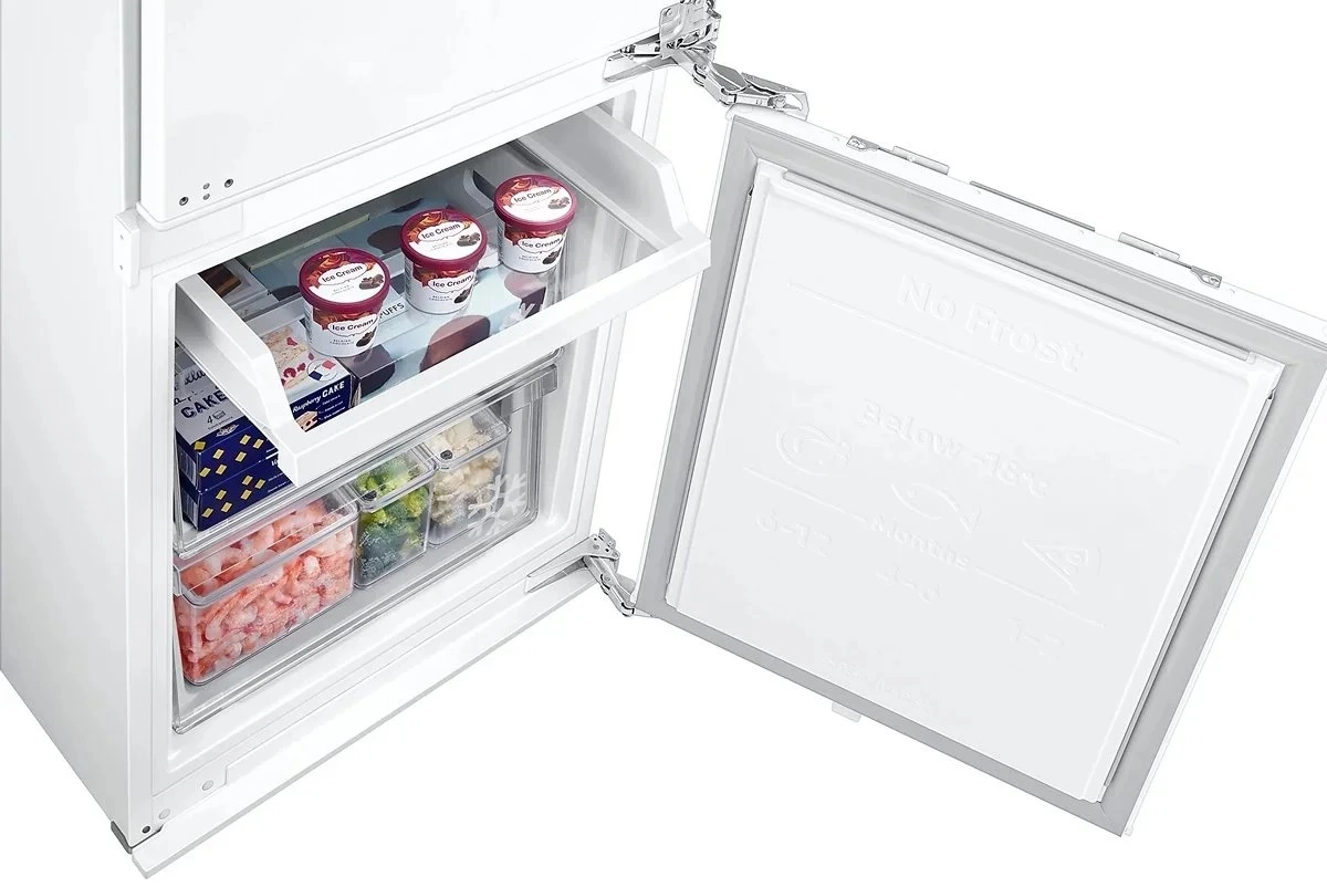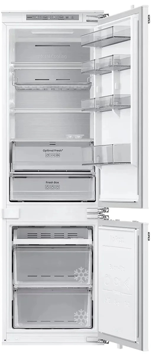 Встраиваемый холодильник Samsung BRB80F26CEF0EO — это компактное и функциональное решение для современных кухонь, где важны экономия пространства, эффективность и инновационные технологии. Модель имеет габариты 177.5х54х55 см и общий объём 267 литров (193 л — холодильная камера, 74 л — морозильная), что делает её идеальной для небольших семей или кухонь с ограниченным пространством. Технология Metal Cooling обеспечивает равномерное распределение холодного воздуха по всей камере, что способствует длительному сохранению свежести продуктов. Система No Frost полностью исключает необходимость ручного размораживания, что экономит время и силы.