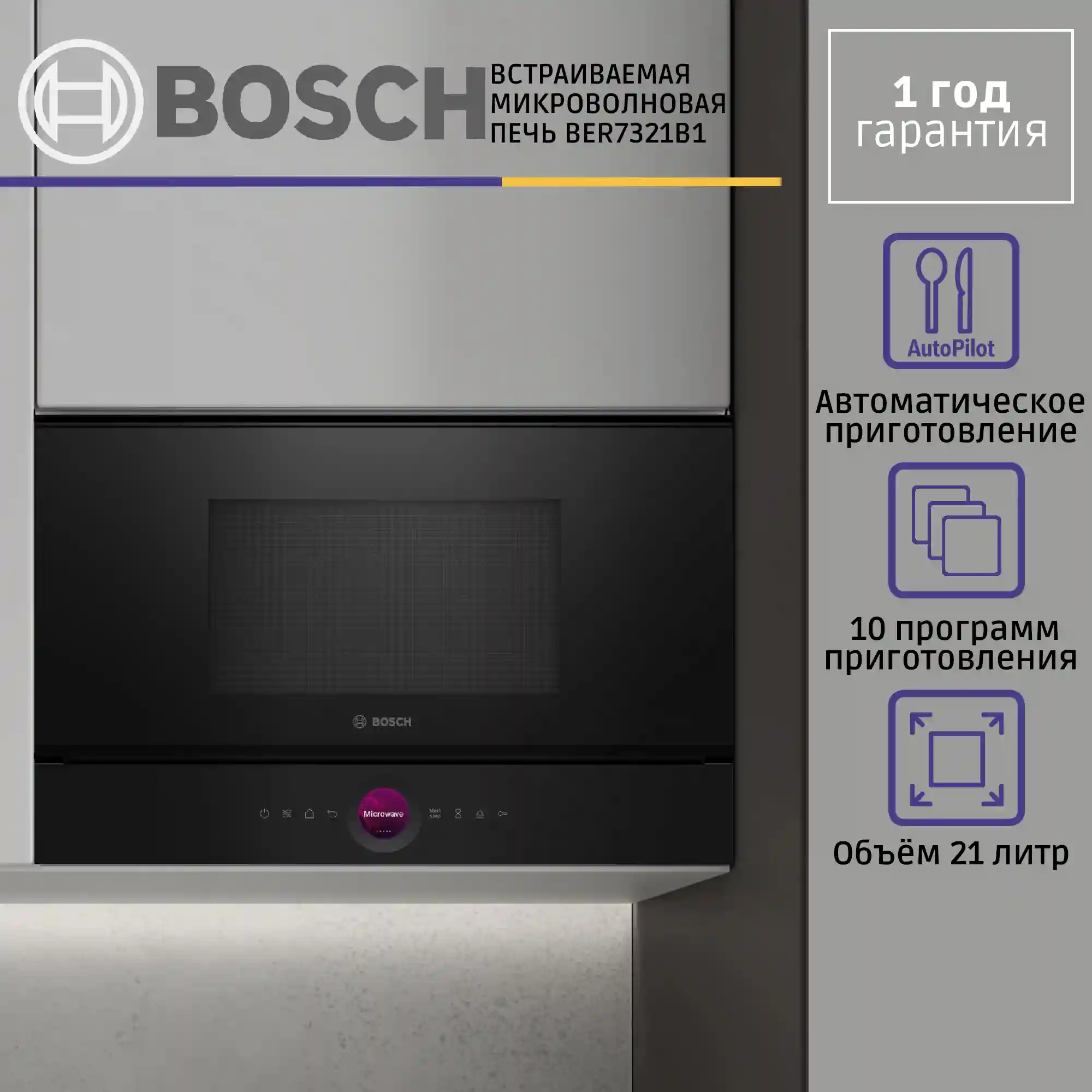 Встраиваемая микроволновая печь BOSCH BER7321B1